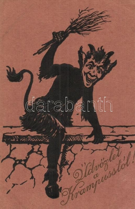 Üdvözlet a Krampusztól! / Krampus greeting art postcard. Emb.