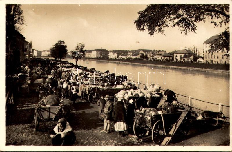 Ungvár, Uzshorod, Uzhhorod, Uzhorod; piac az Ung folyó partján / market on the Uzh riverside. photo (lyuk / hole...