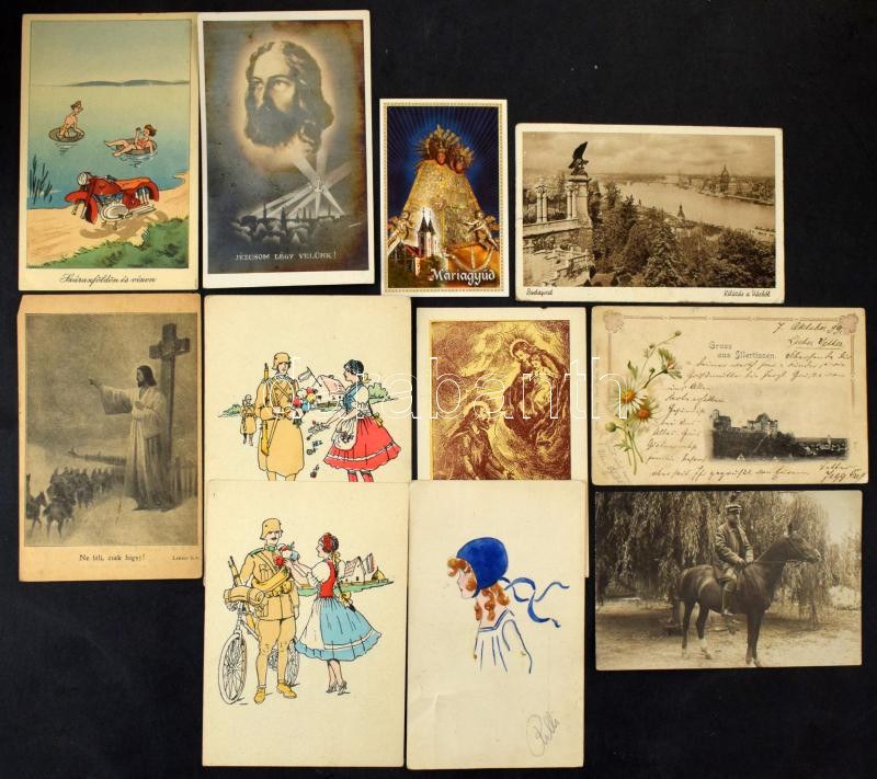 Vegyes tétel, modern és régi motívum és városképes képeslapok, szentképek, 2 régi imakönyv...