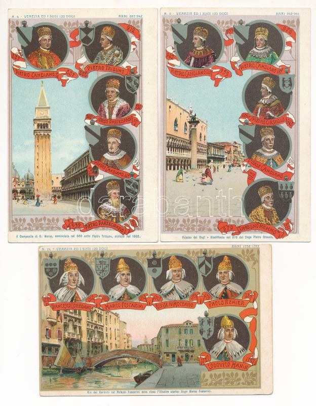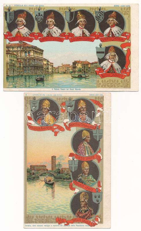 Venezia - Ed I Suoi 120 Dogi / The doges of Venice; a set of 24 unused lithographic postcards / 24 használatlan litho képeslap 120 velencei dózse képével