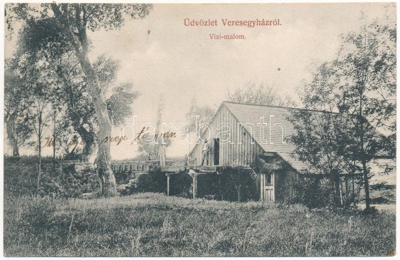 Veresegyháza, vízi malom. Brüll Lajos kiadása + "ŐRSZENTMIKLÓS POSTA ÜGYN"