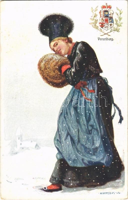 Vorarlberg / Osztrák népviselet és címer / Austrian folklore and coat of arms. B.K.W.I. 547-13. s: Karpellus (fl...