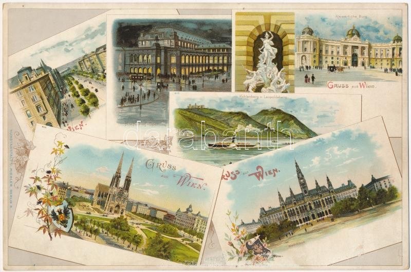 (Vorläufer) Wien, Vienna, Bécs; Kaiserliche Burg, Kahlenberg und Leopoldsberg, K.u.k. Hof-Oper, Rathhaus, Votiv Kirche ...