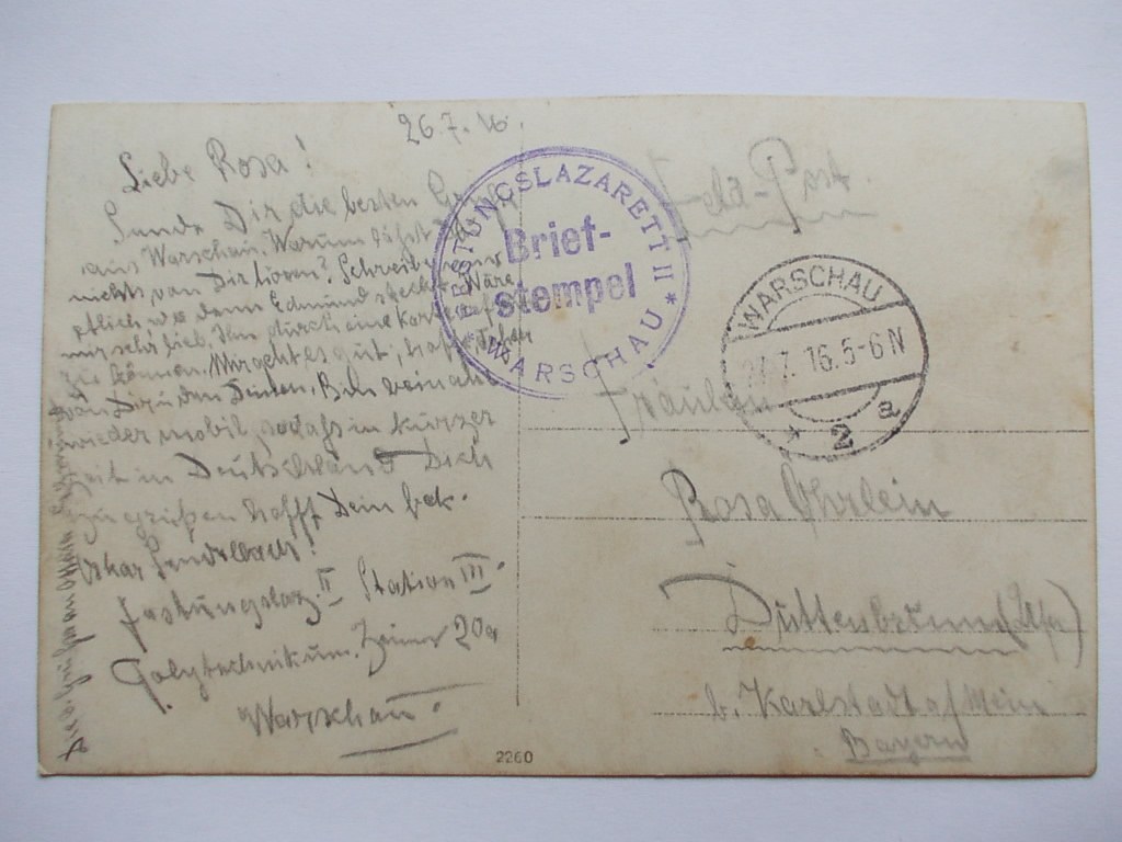 Warszawa, szpital wojenny II, stempel 1916