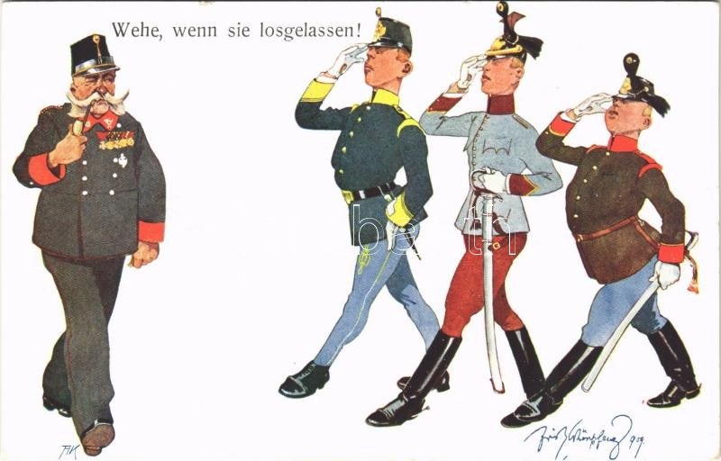 Wehe, wenn sie losgelassen! K.u.K. Militärhumor / Osztrák-magyar katonai humor / Austro-Hungarian military humour. B.K.W.I. 336-2. s: Fritz Schönpflug