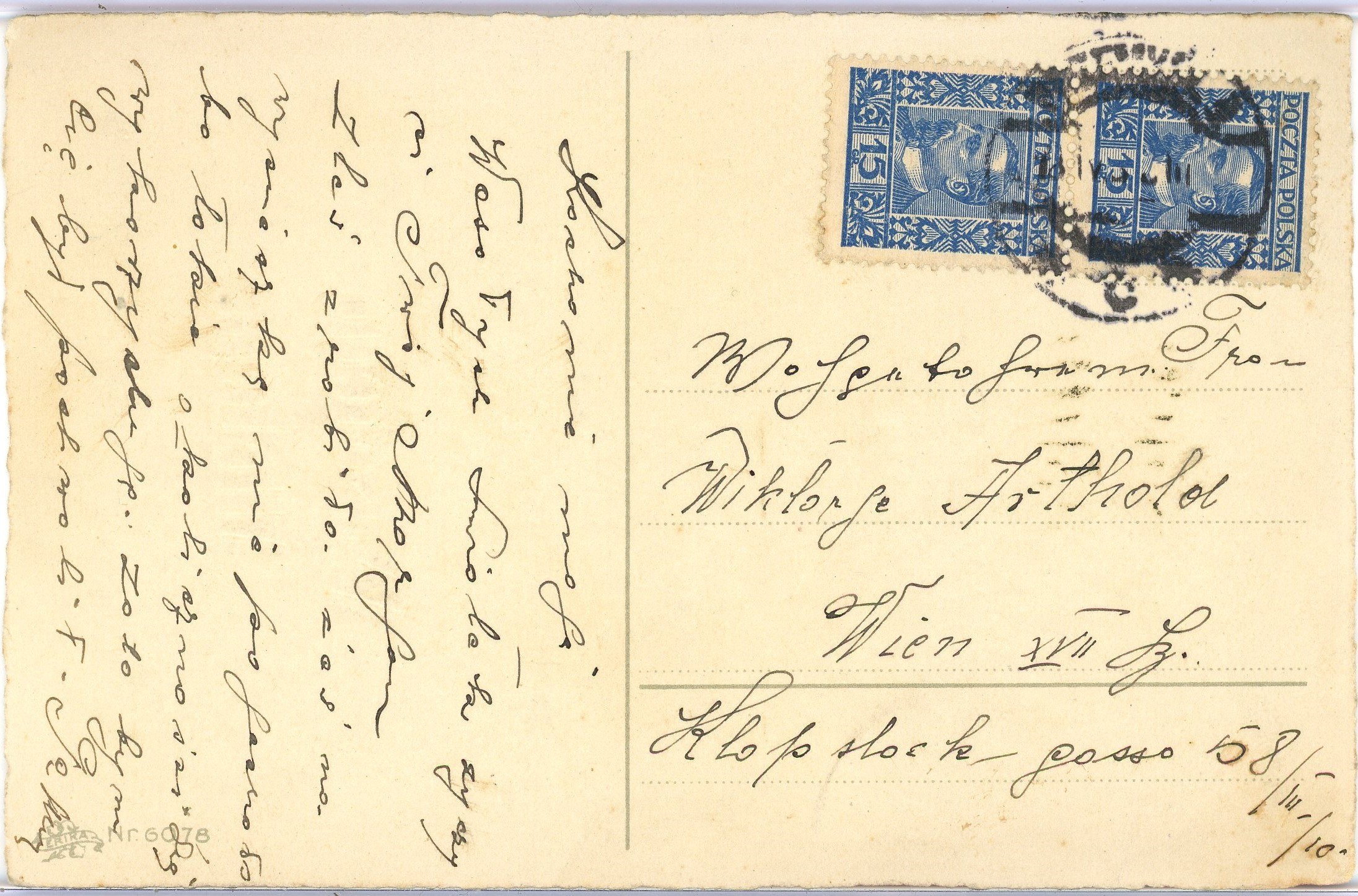 Wyd. "Erika". Kartka zapisana, data nieczytelna. Niewielkie zabrudzenia, poza tym stan dobry.