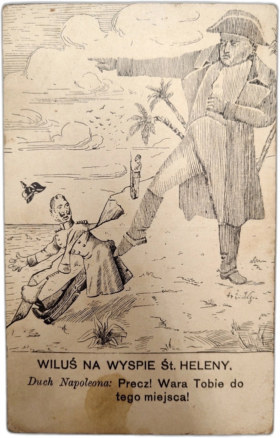 Wiluś na Wyspie Śt. Heleny - pocztówka, satyryczna, Wyd. HOŻA