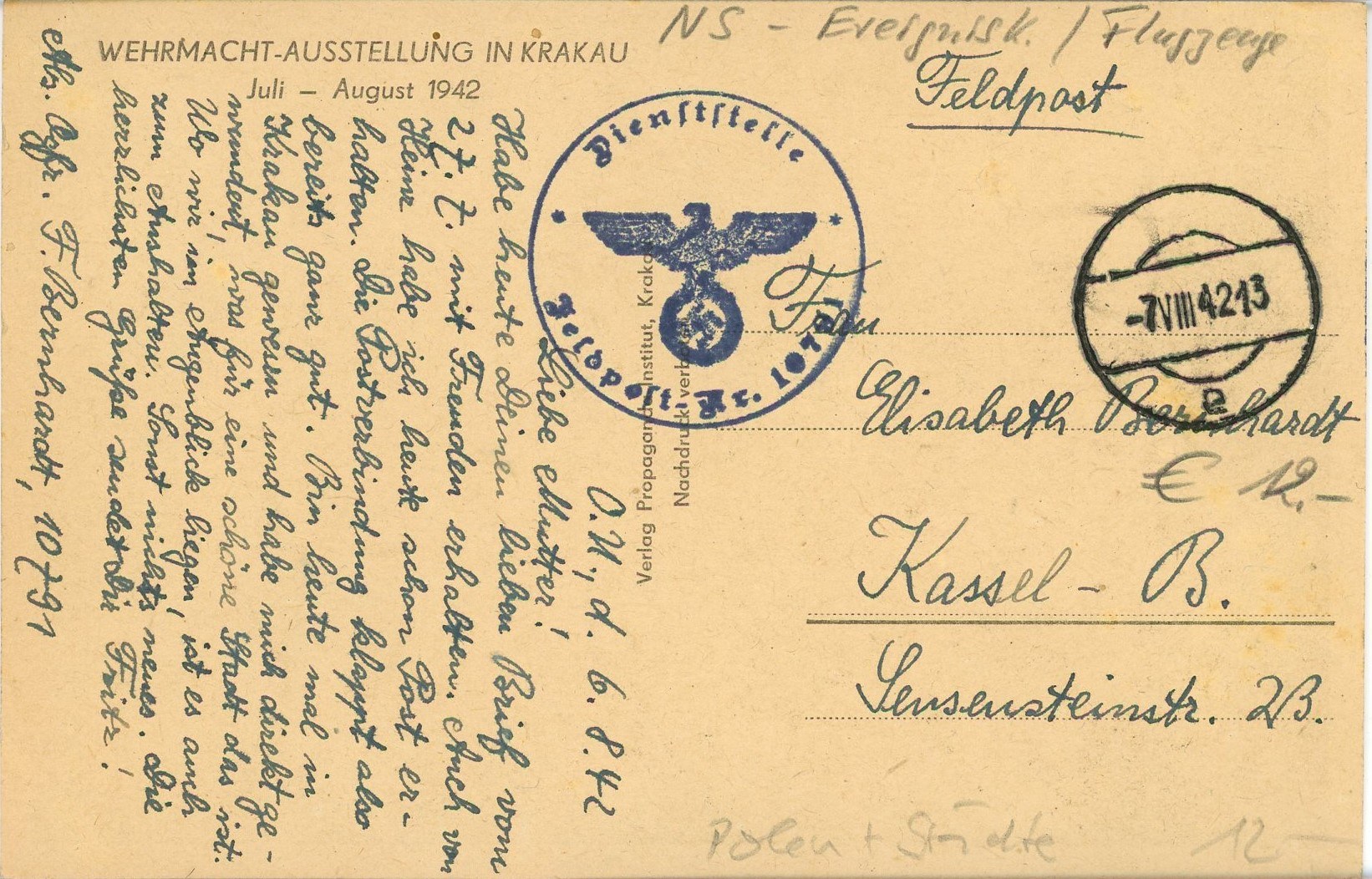 Wyd. Instytutu Propagandy w Krakowie. Kartka zapisana, dat. 7.8.1942 r. Stan bardzo dobry. Rzadka.