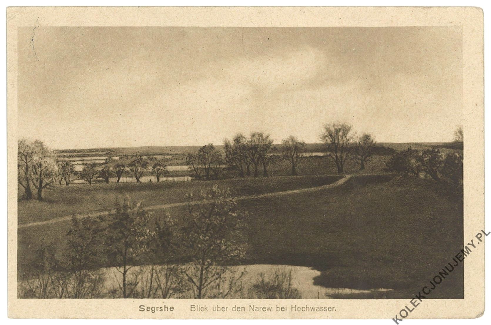 Opis: Segrshe. Blick über den Narew bei Hochwasser.