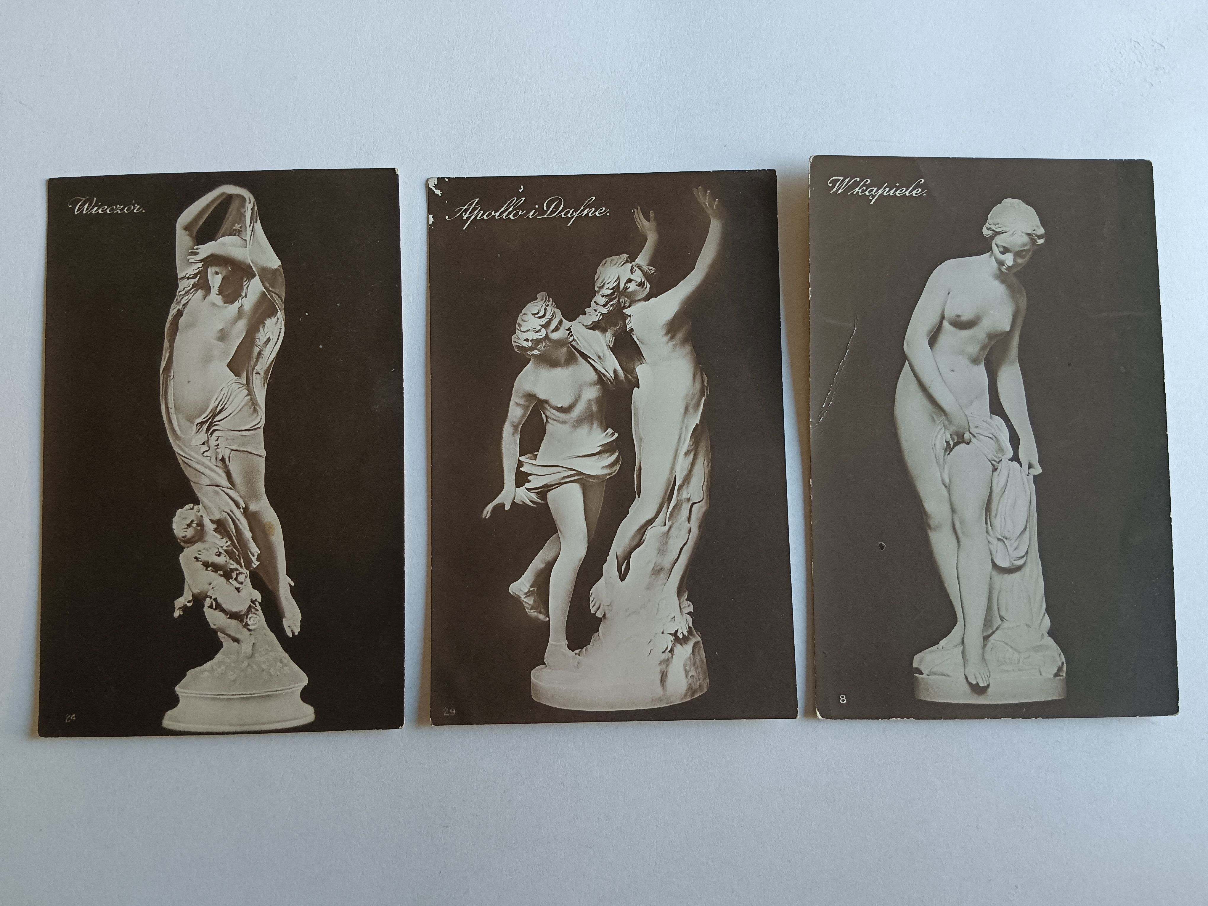 ZESTAW 3 POCZTÓWEK POSĄGI WIECZÓR APOLLO I DAFNE W KĄPIELI PRZEDWOJENNYCH