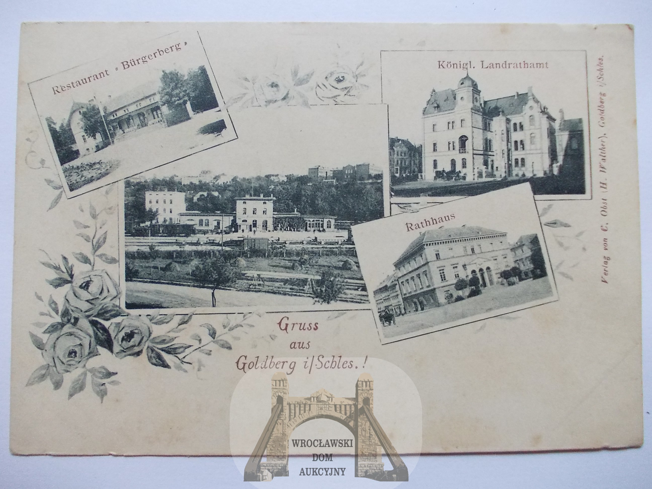 Złotoryja, Goldberg, restauracja, ratusz, landratura, dworzec, ok. 1900
