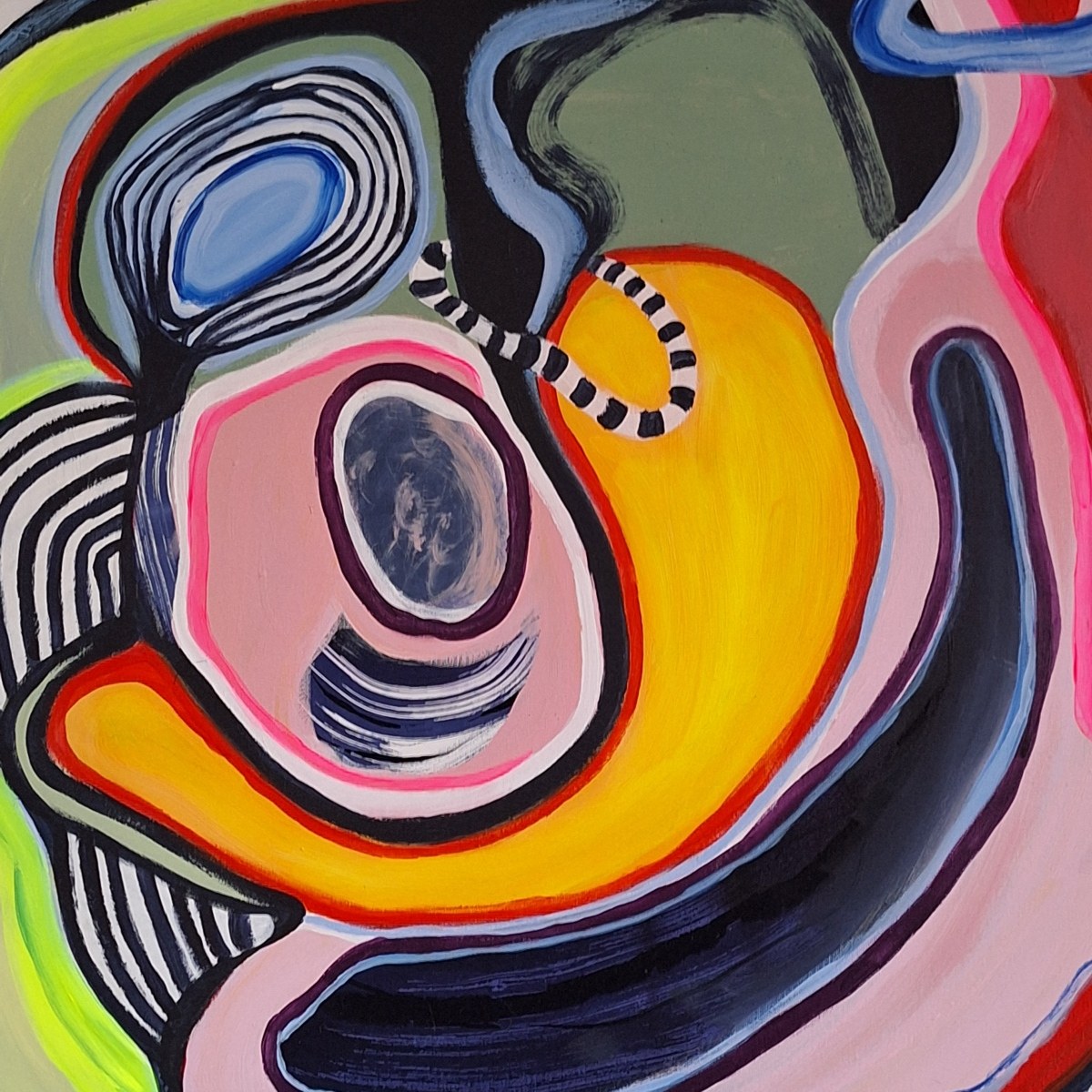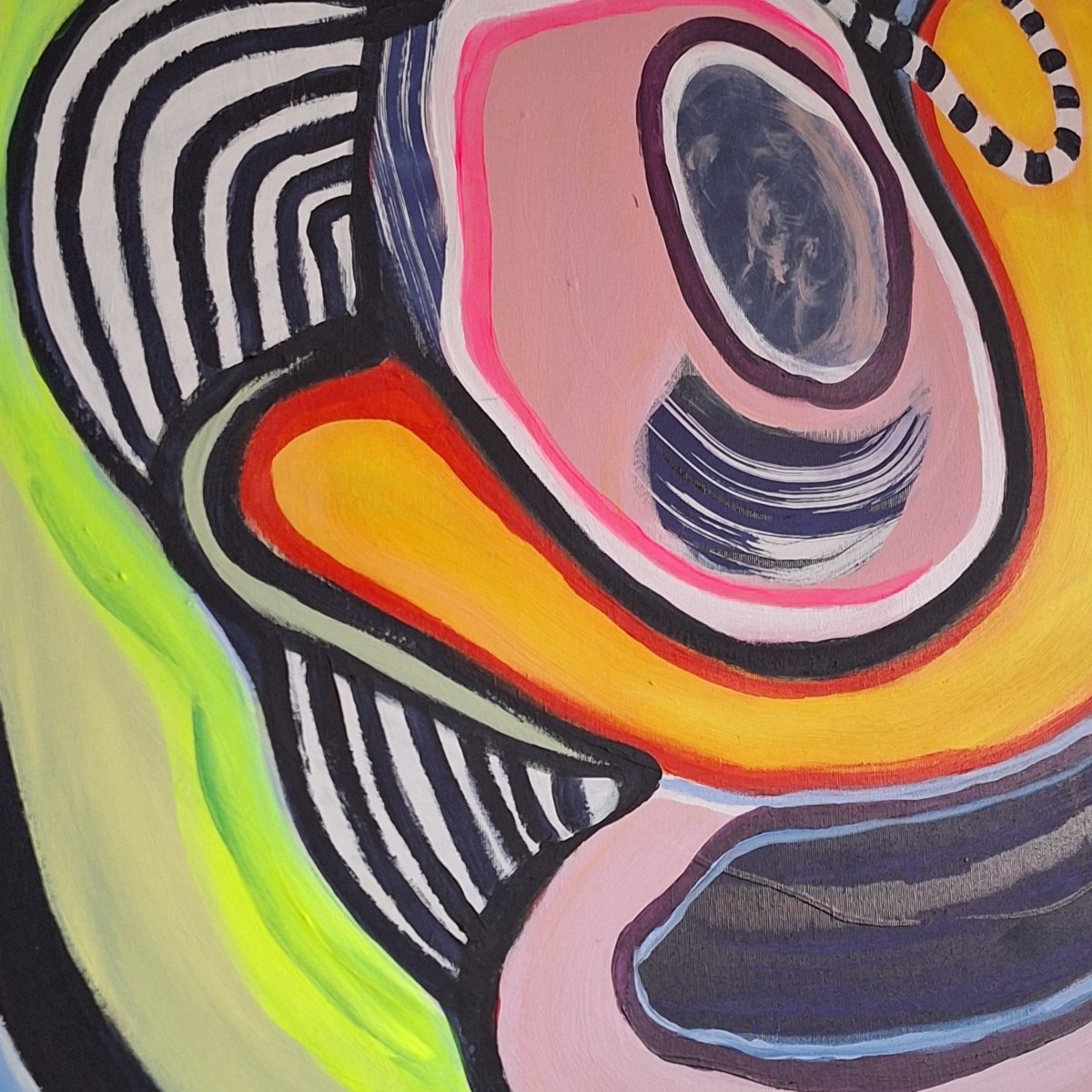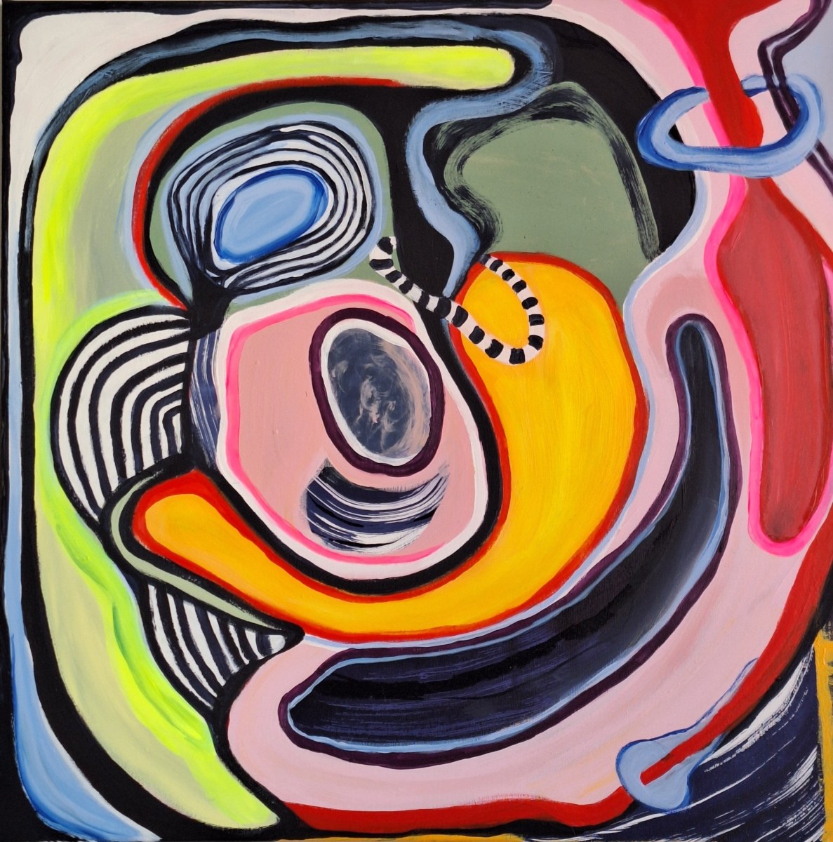 technika mieszana (akryl, tusz akrylowy), płótno, 90 x 90 cm, sygn. z boku ramy i na odwrocie: Izabela Ro., 2025 r.