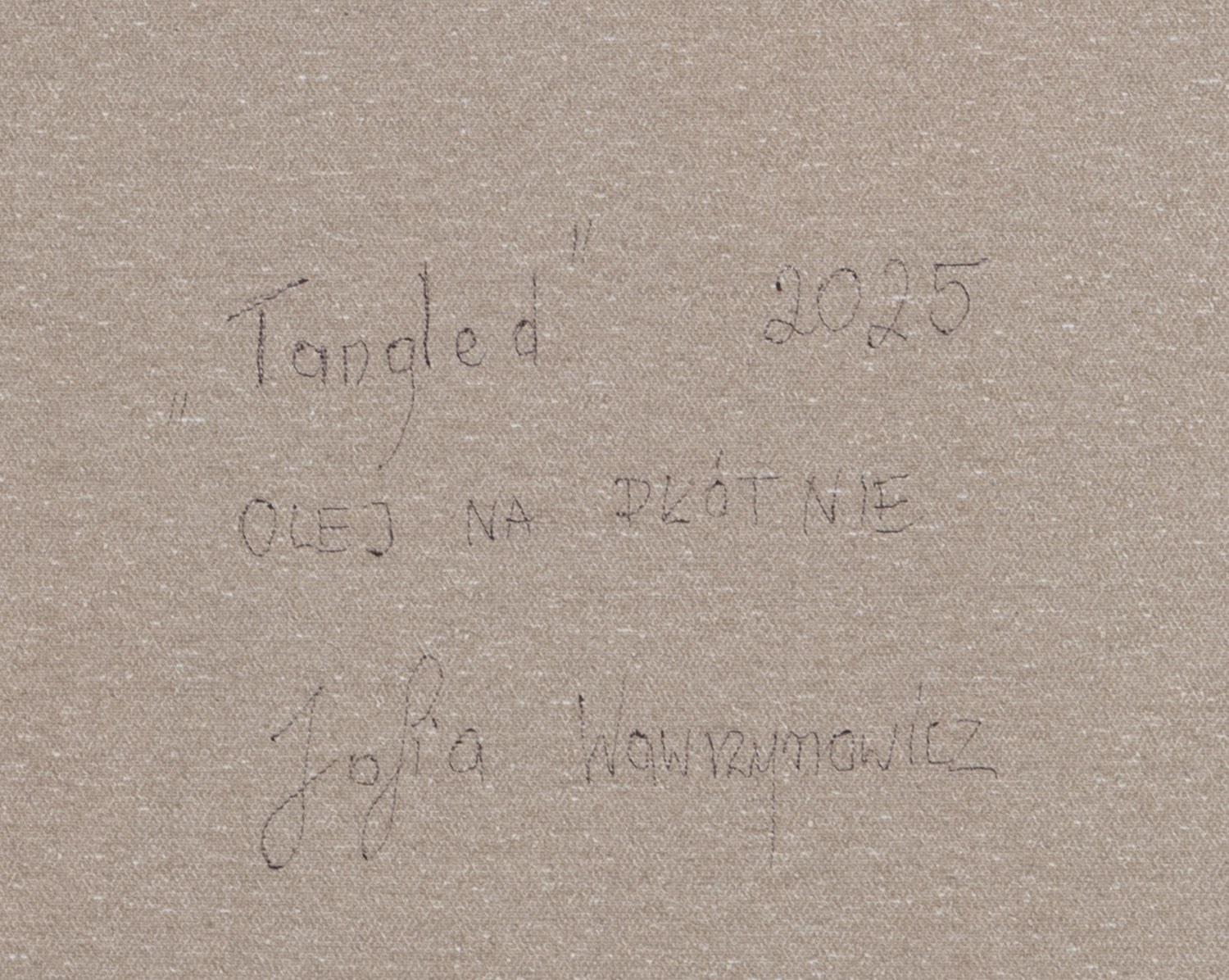 sygnowany, datowany i opisany na odwrociu: '"Tangled" 2025 | OLEJ NA PŁÓNIE | Zofia Wawrzynowicz'
