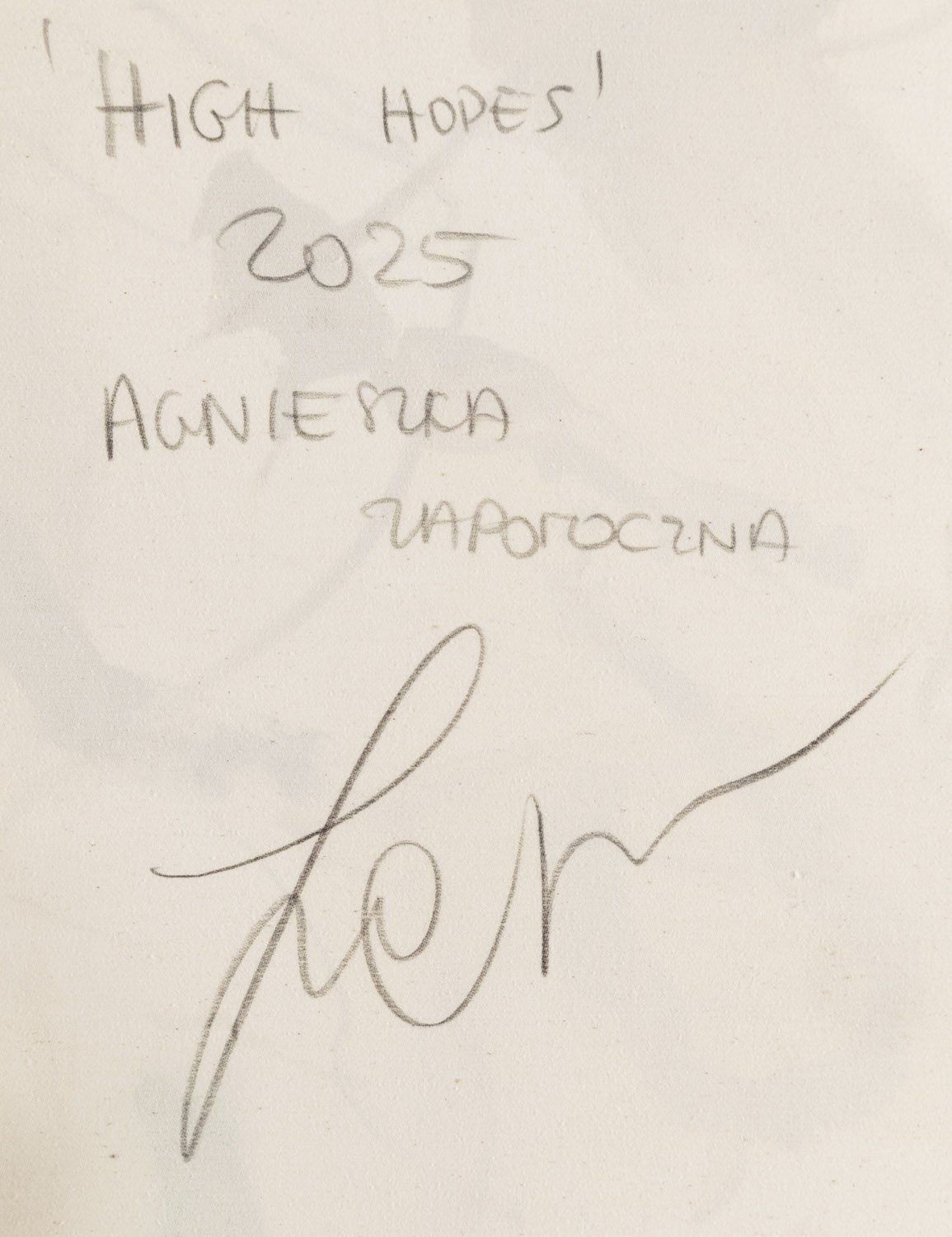 sygnowany, datowany i opisany na odwrociu: ''HIGH HOPES' | 2025 | AGNIESZKA | ZAPOTOCZNA | [sygnatura artystki]'