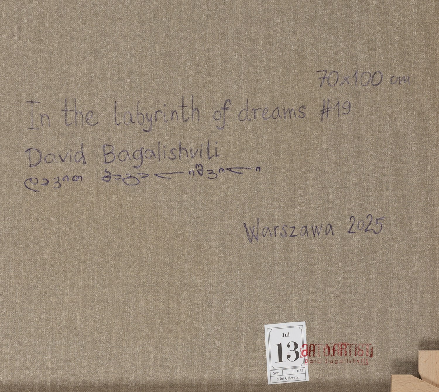 sygnowany, datowany i opisany na odwrociu: '70x100 | "In the labirynth of dreams #19" | David Bagalshvili | Warszawa 2025'