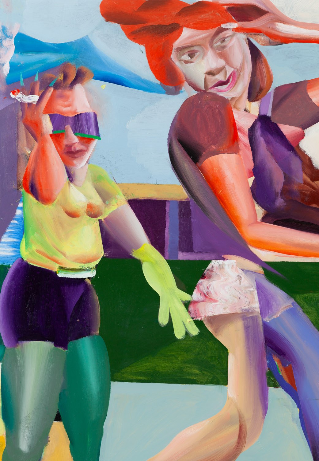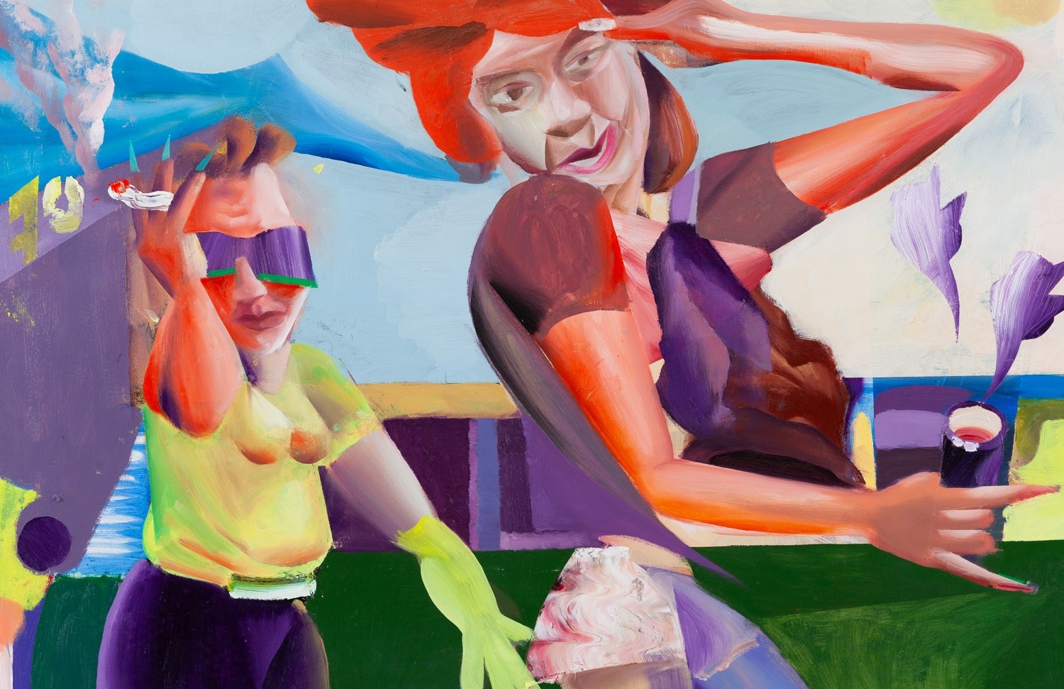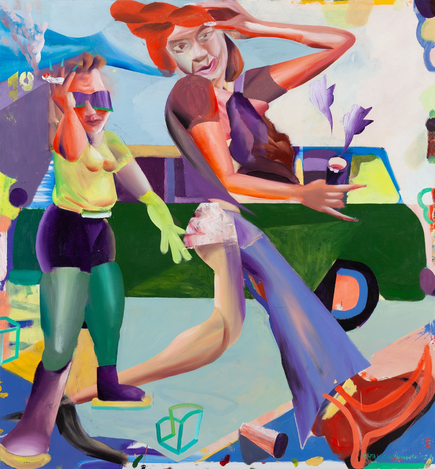 sygnowany, datowany i opisany na odwrociu: 'RAFAŁ CHOJNOWSKI | "OBRAZ Z DWOMA KOBIETAMI | I ZIELONYM OGÓRKIEM | W TLE" | OLEJ NA PŁÓTNIE | 2023 | R. Chojnowski'