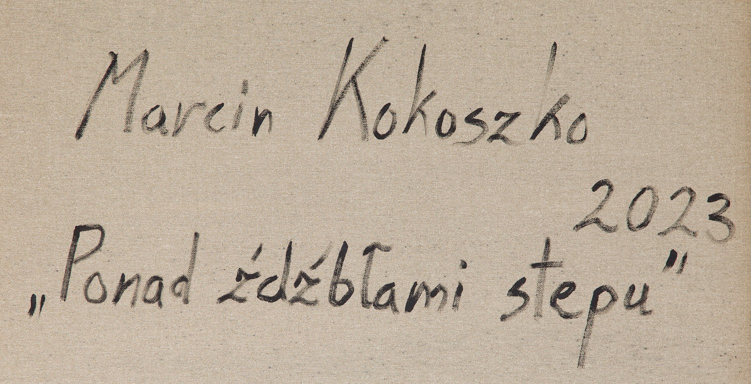 sygnowany, datowany i opisany na odwrociu: 'Marcin Kokoszko | 2023 | "Ponad źdźbłami stepu"'