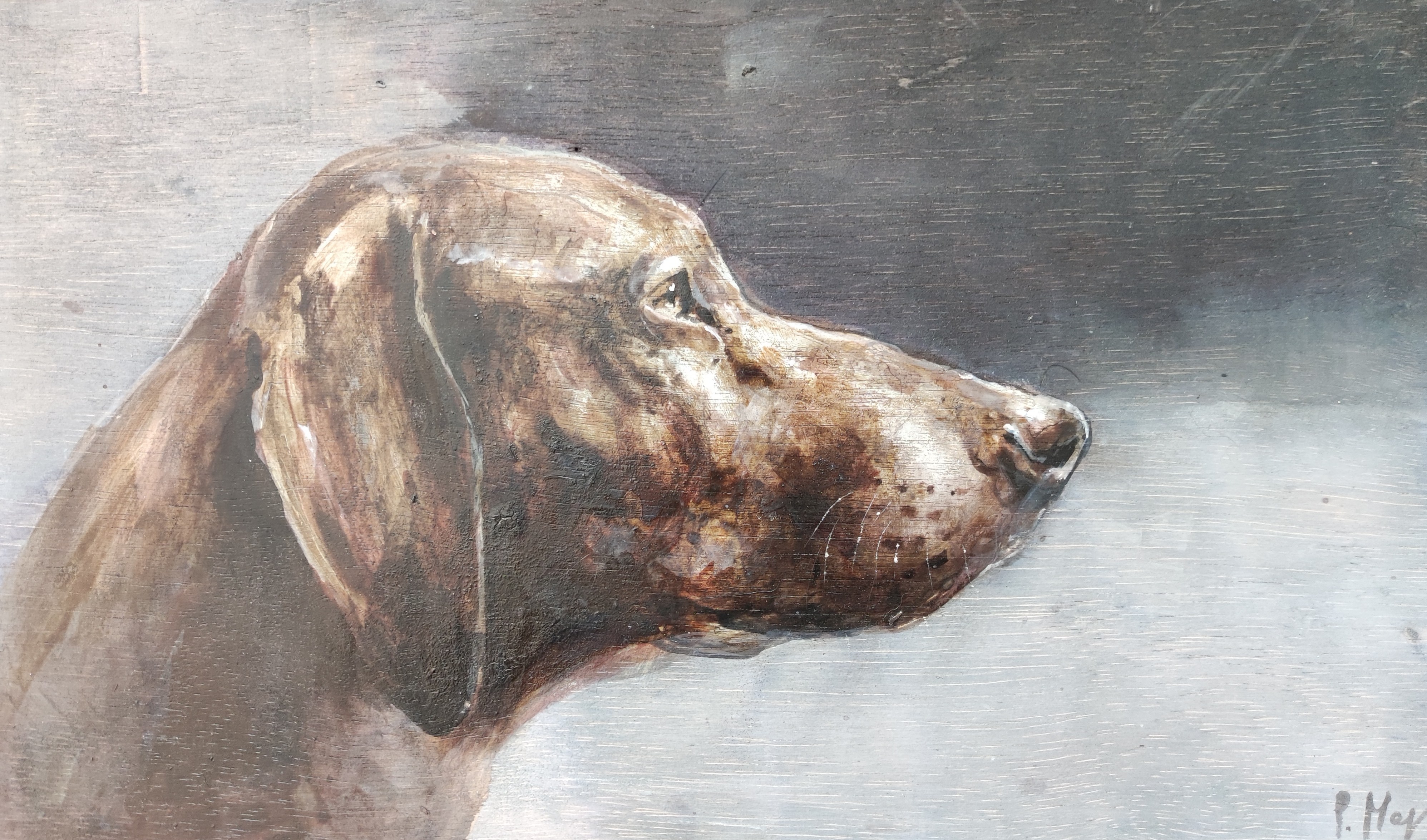 Paulina Mager, "Wyżeł" technika mieszana, sklejka 47x27cm