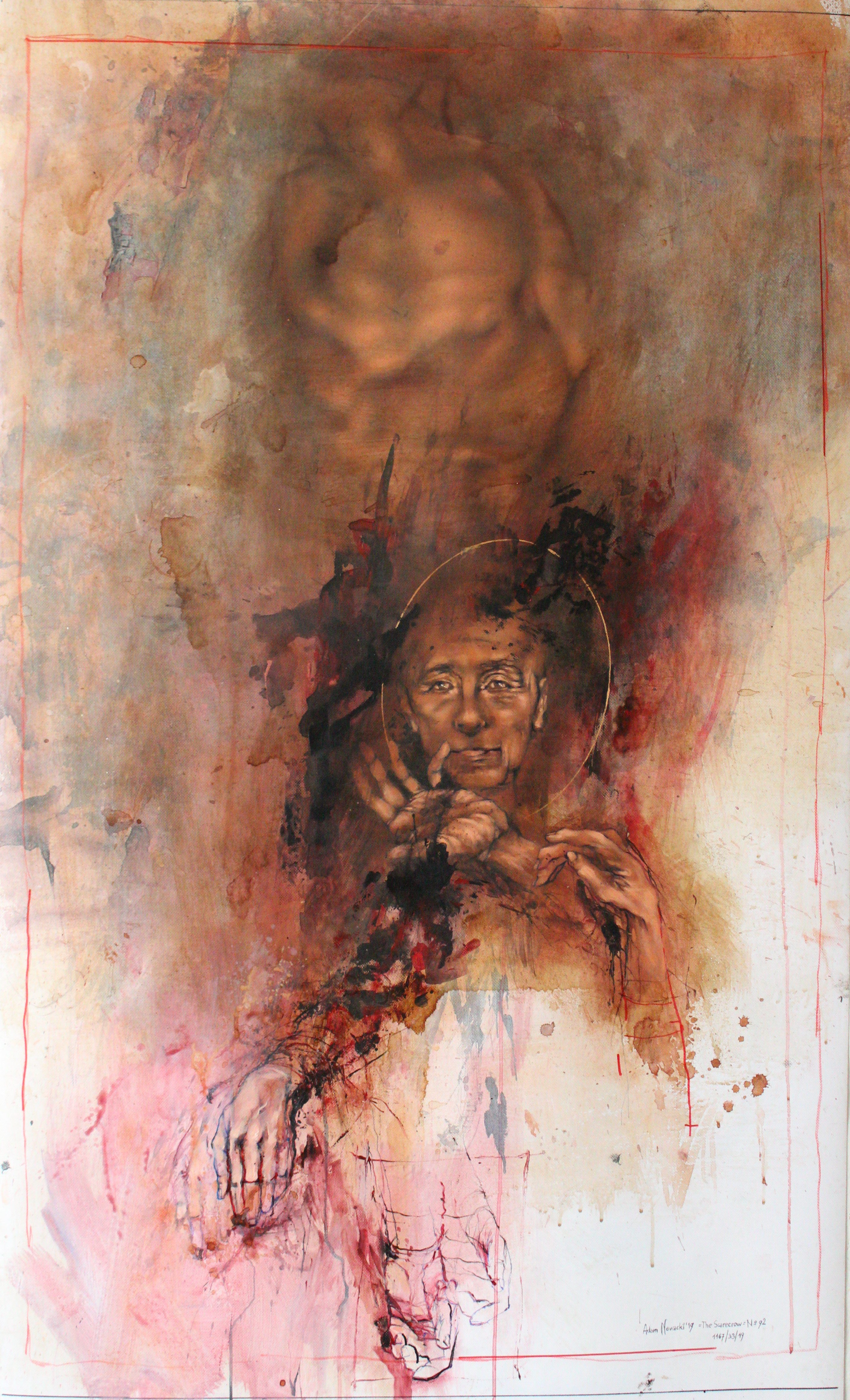 Technika akryl-olej malowany na płótnie naklejonym na płytę o wymiarach 150 x 92 cm