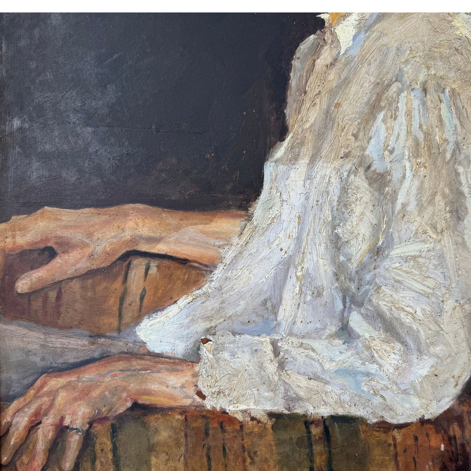 Oil painting on cardboard, 20th century, Italian school, depicting a portrait of an elderly woman. Dimensions inside frame: 78x52 cm. (Work of extraordinary artistic quality) By an anonymous artist.