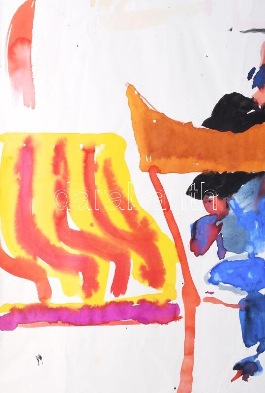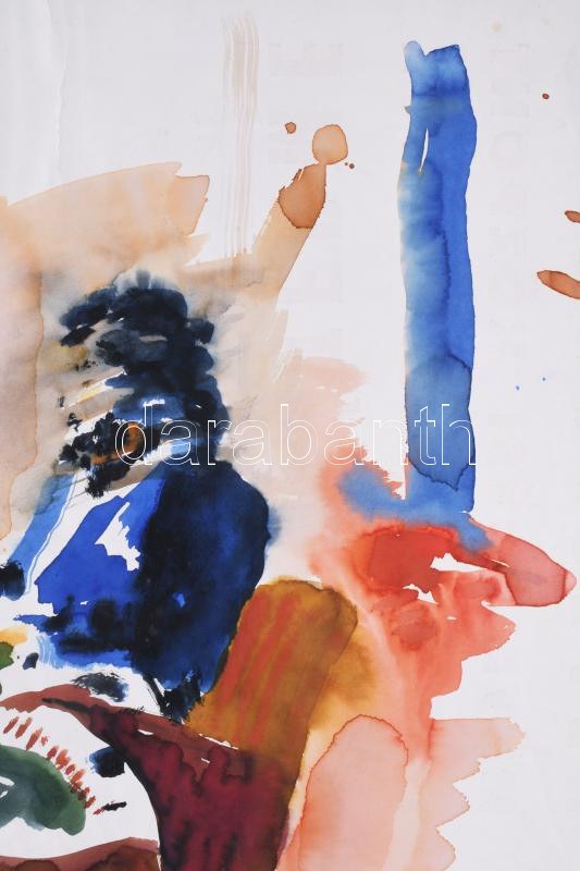 Bukta Imre (1952-): Bukta Imre és Balogh István Vilmos a budapesti, Majakovszkij (Király) utcai közös műhelyükben, 1983. Akvarell, papír, jelzett, gyűrődésekkel, keretben, 50×70 cm