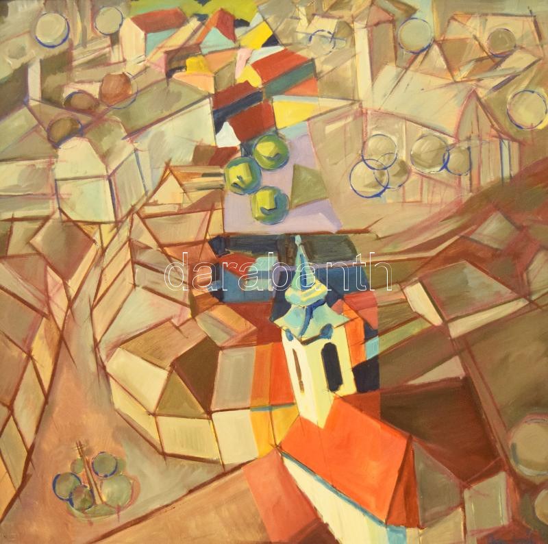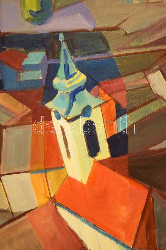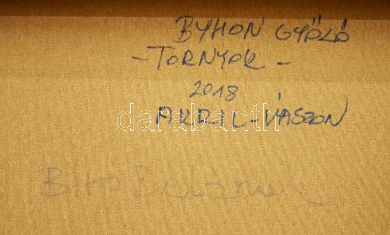Byhon/Bihon Győző (1959-): Tornyok. Akril, vászon, jelezve jobbra lent, hátoldalán autográf felirattal...