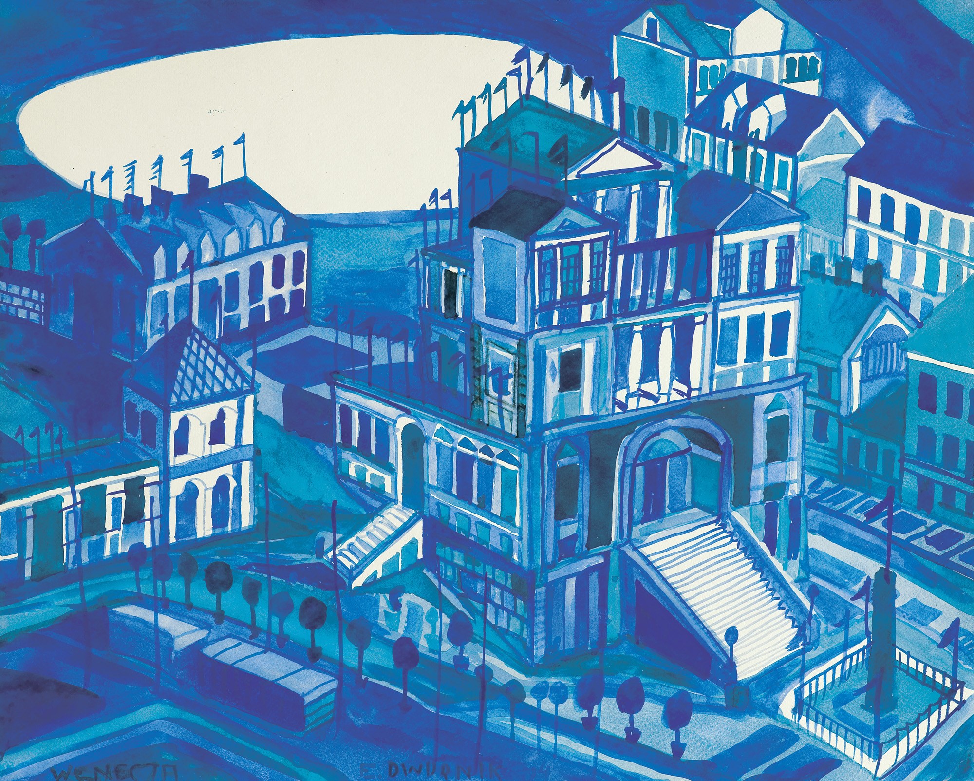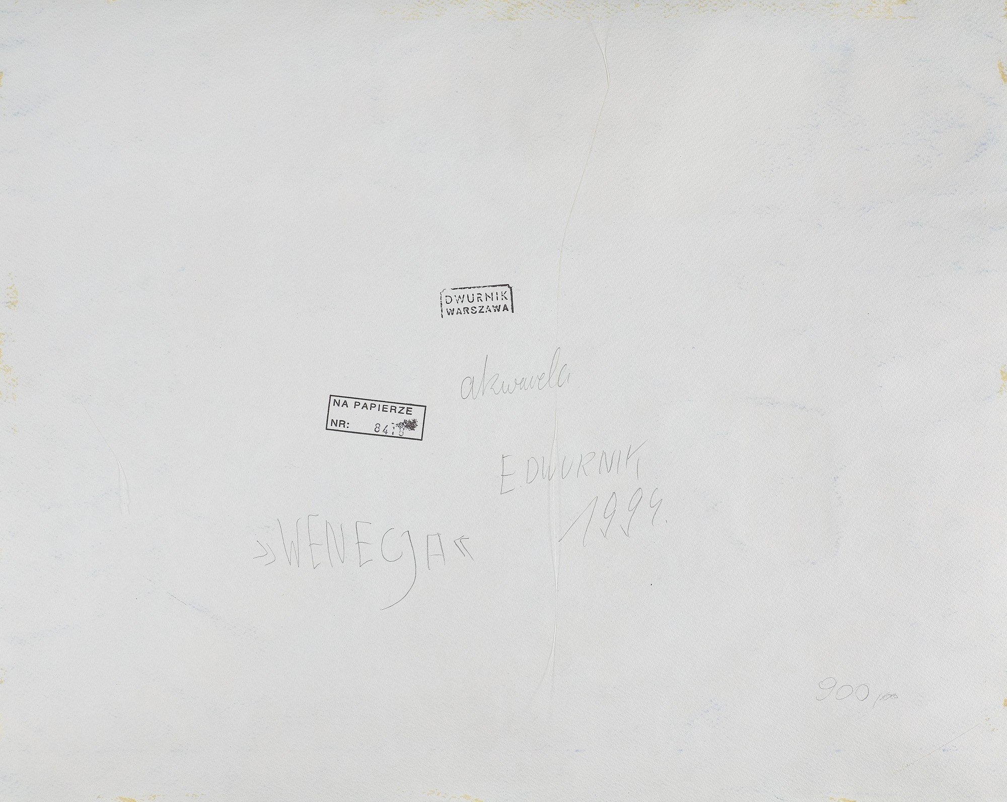 obok i niżej sygn. oł.: akwarela | E. DWURNIK | 1994 | »WENECJA«, niżej p. napis oł.: 900 / [nieczyt.].