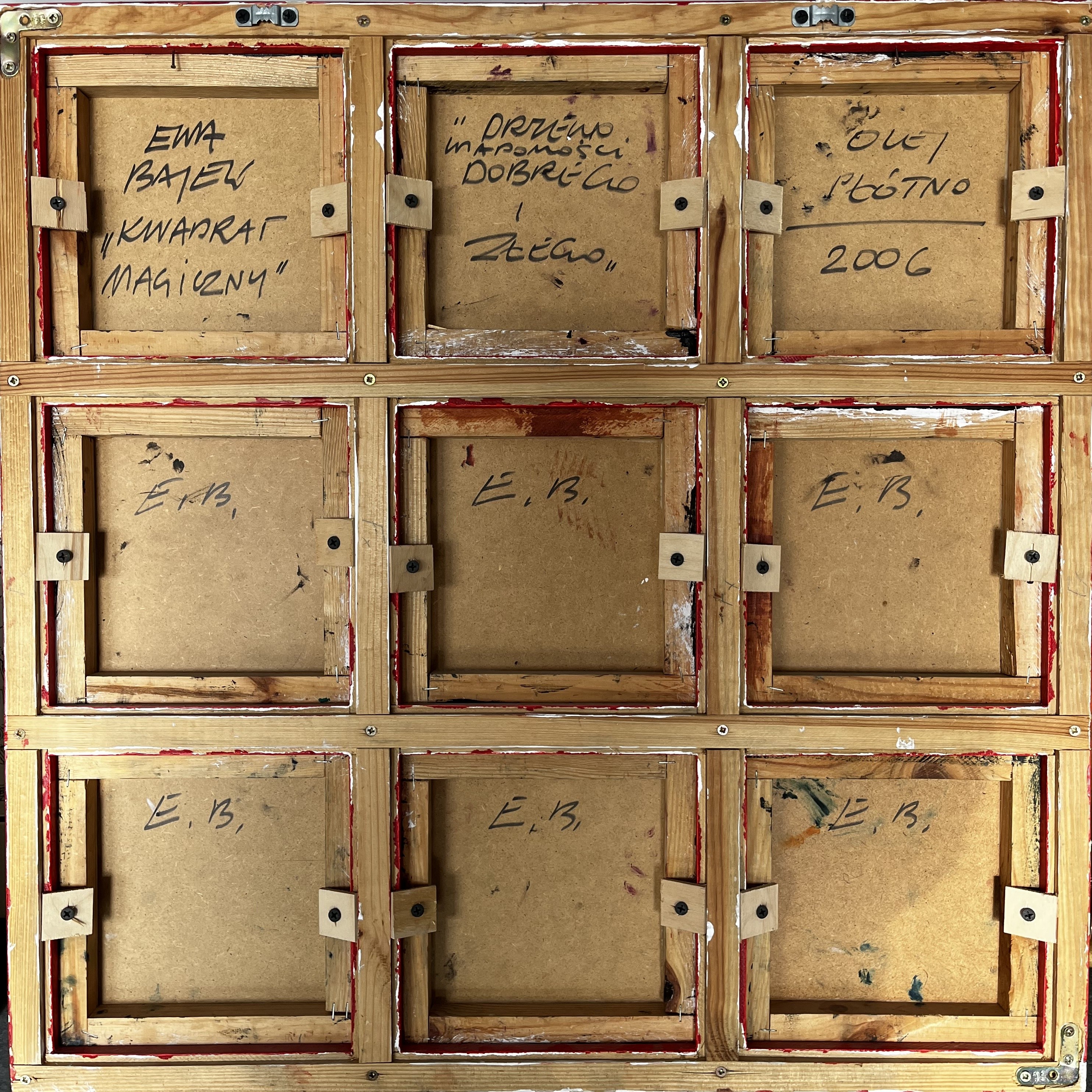 olej, 68 x 68 cm, opisana i sygnowana na odwrociu