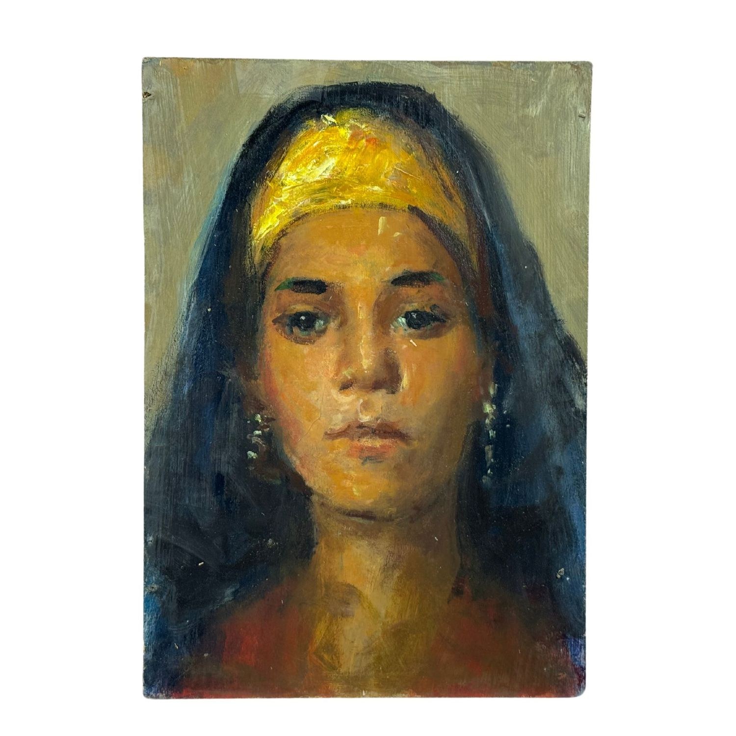 Oil painting on panel, 20th century, Italian school, depicting a portrait of a woman in the Impressionist style. Dimensions: 24x17 cm. By an anonymous artist. The artwork is in good condition.