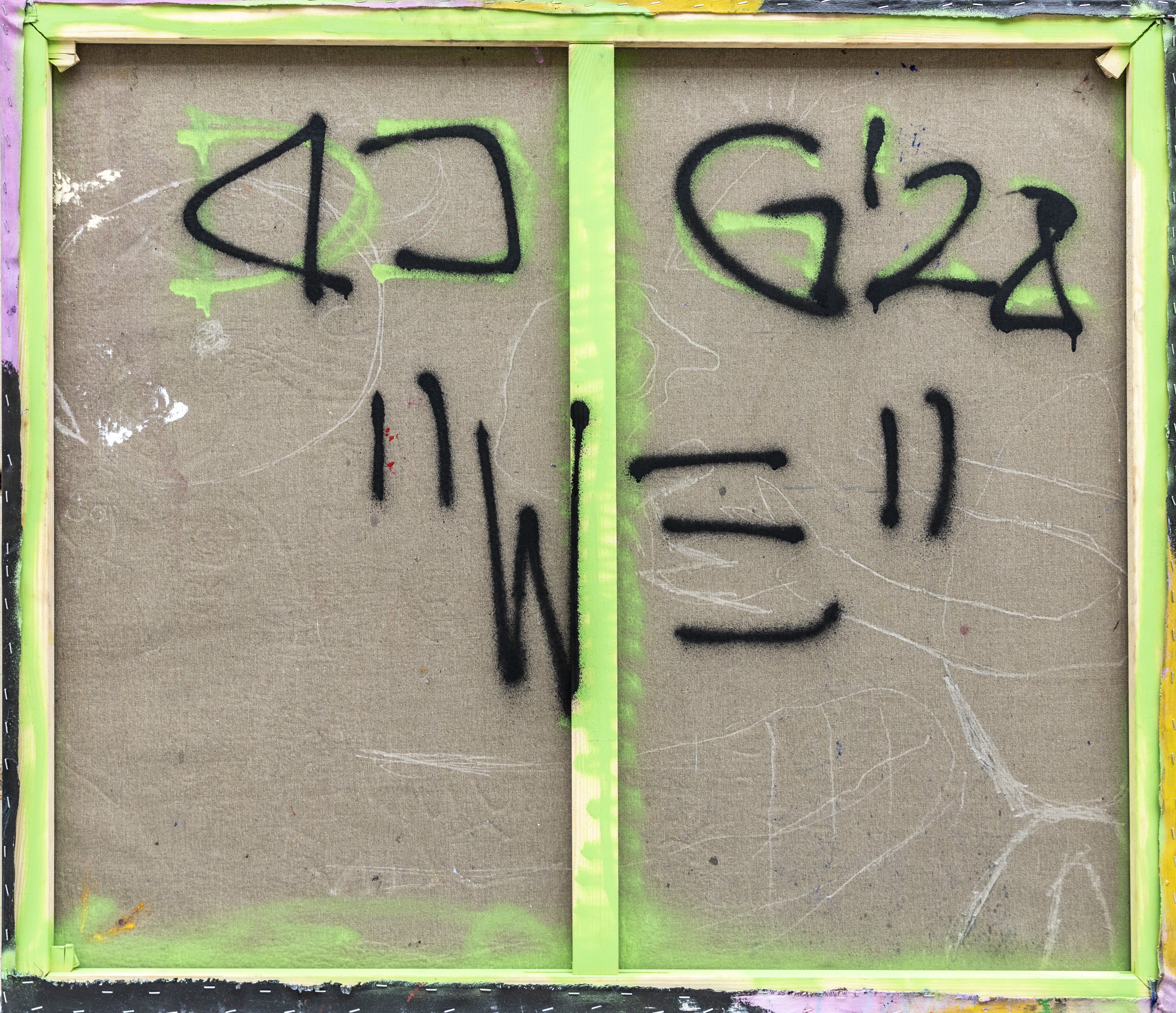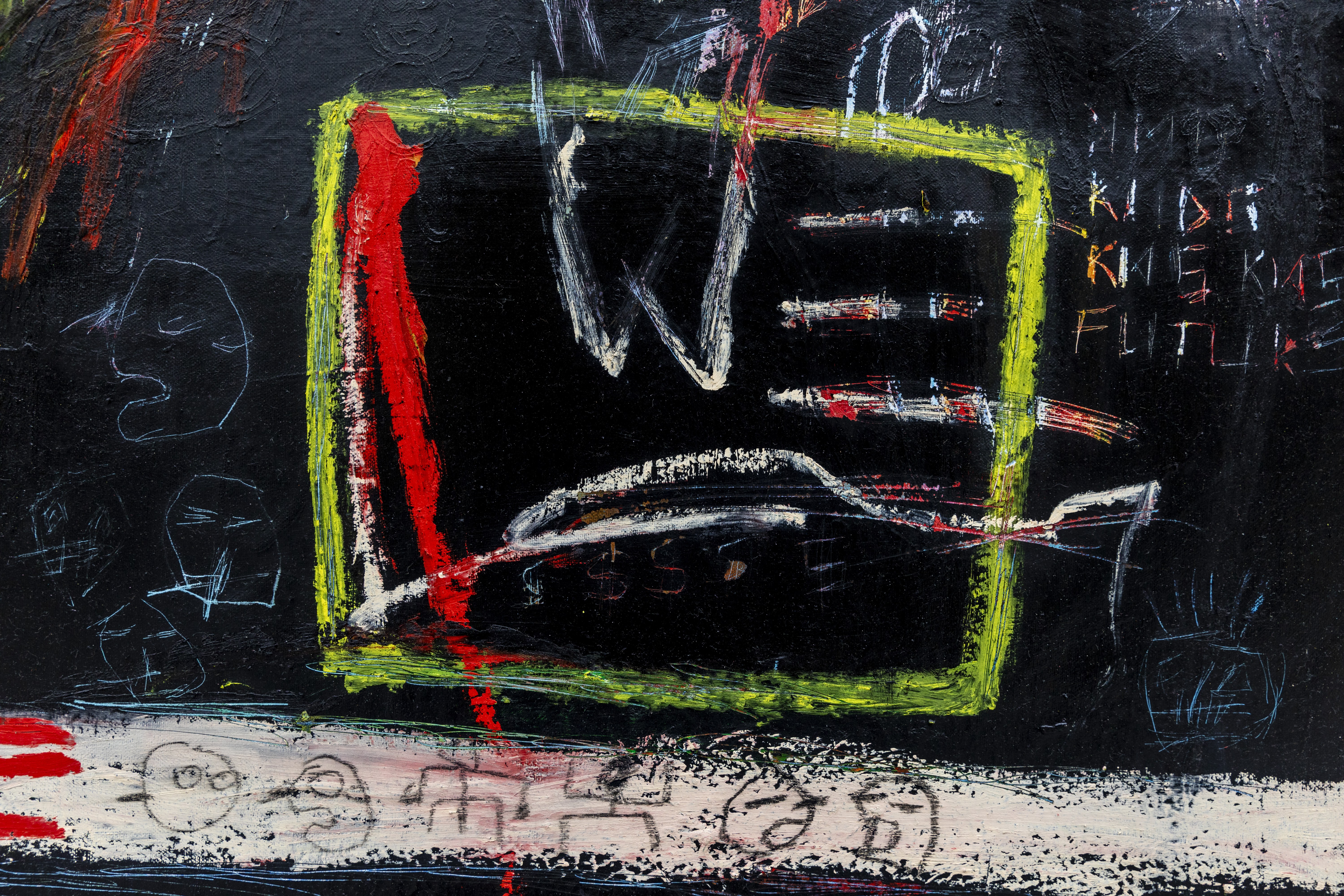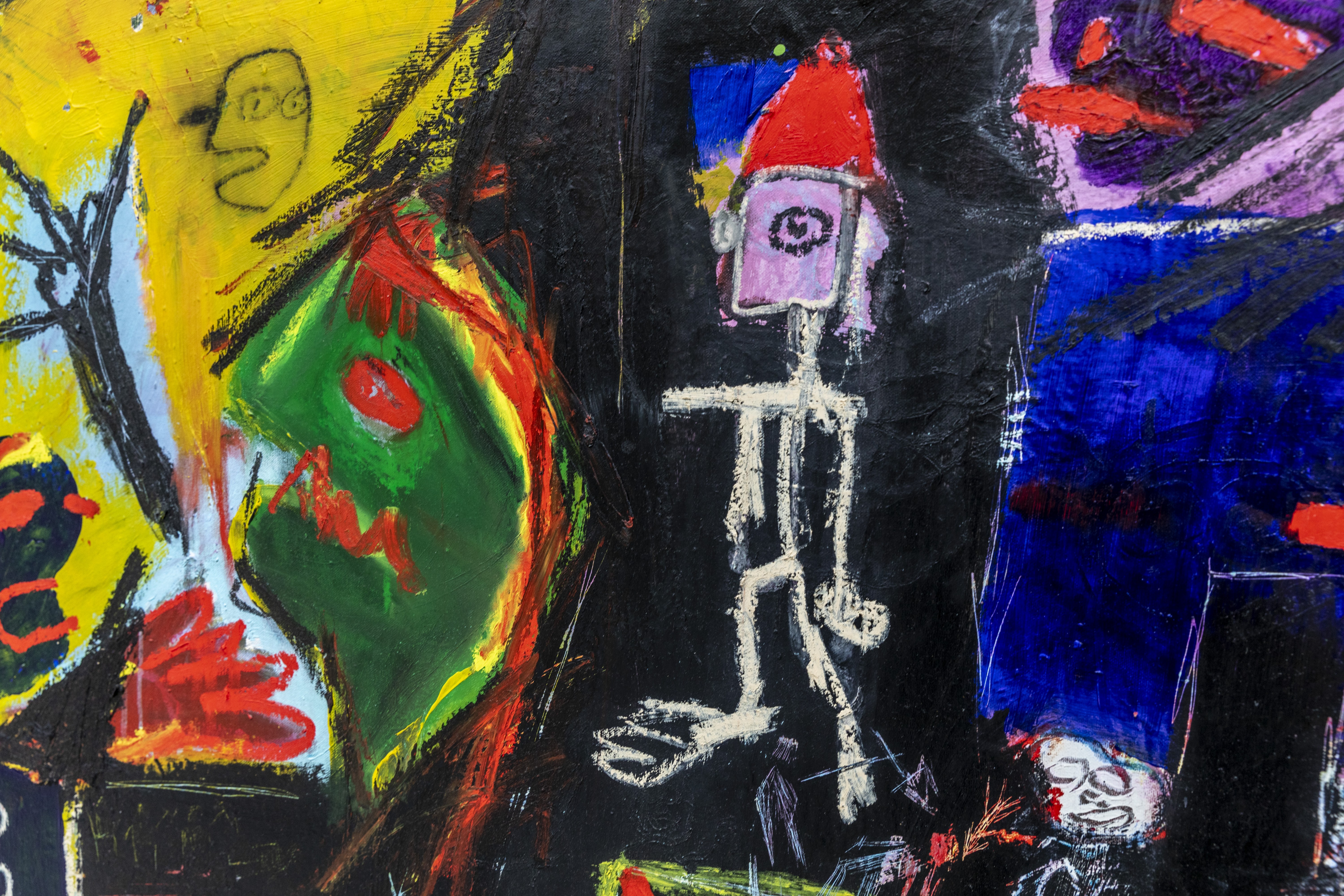 Wymiary: 115x100cm / technika mieszana: farby akrylowe, sztyfty olejne, spray, pastele olejne.