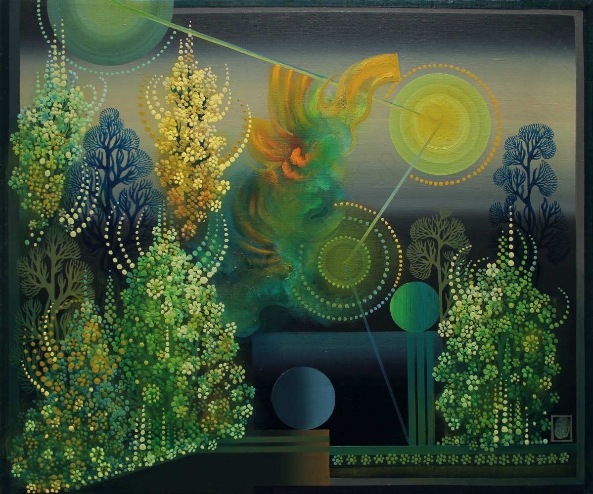Pejzaż niebieski sygn.p.d. odciskiem palca i na odwrociu HENRYK PŁÓCIENNIK