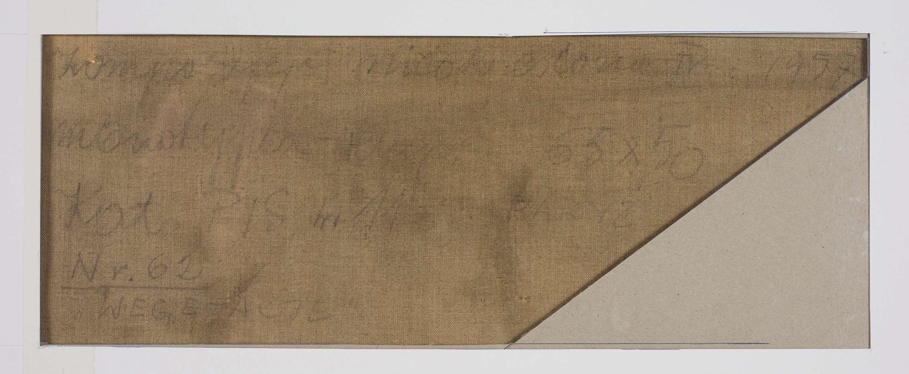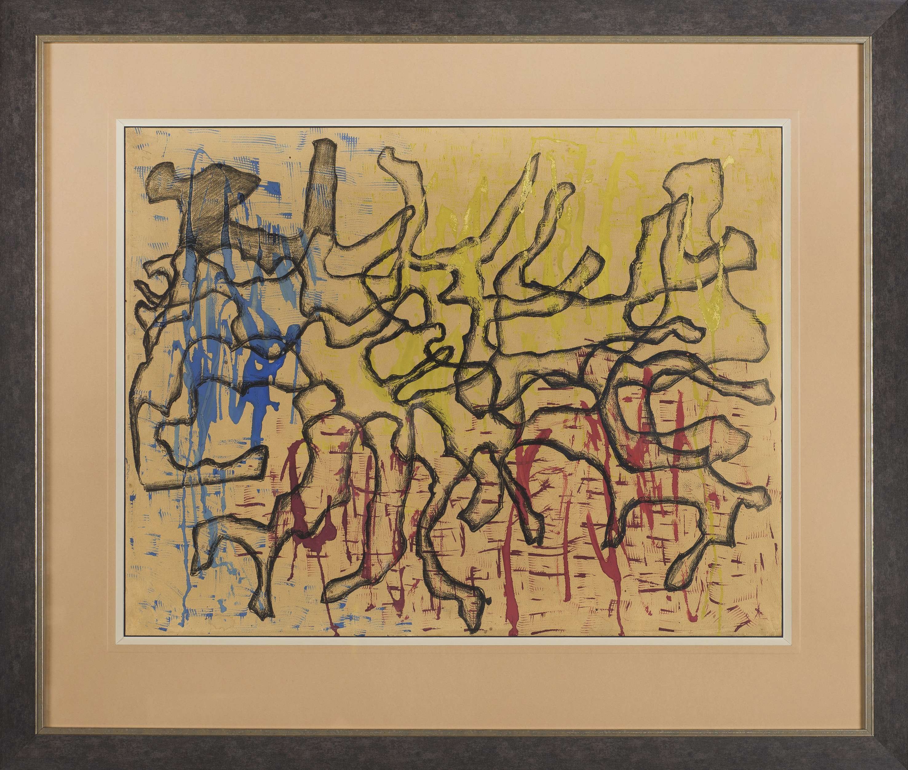 Monotypia, tempera, papier naklejony na płótno, 65 x 50 cm. Na odwrocie autorski opis: Kompozycja nieokreślona IV 1957 monotypia-temp. 65 x 50 kat. PiS nr 14 Paryż nr 62 "Wegetacje". Czas powstania: 1957. Dołączona ekspertyza Pana Aleksandra Filipowicza. Obraz będzie reprodukowany w katalogu wszystkich dzieł Marii Jaremy, opracowywanym na zlecenie Muzeum Sztuki Współczesnej w Warszawie.