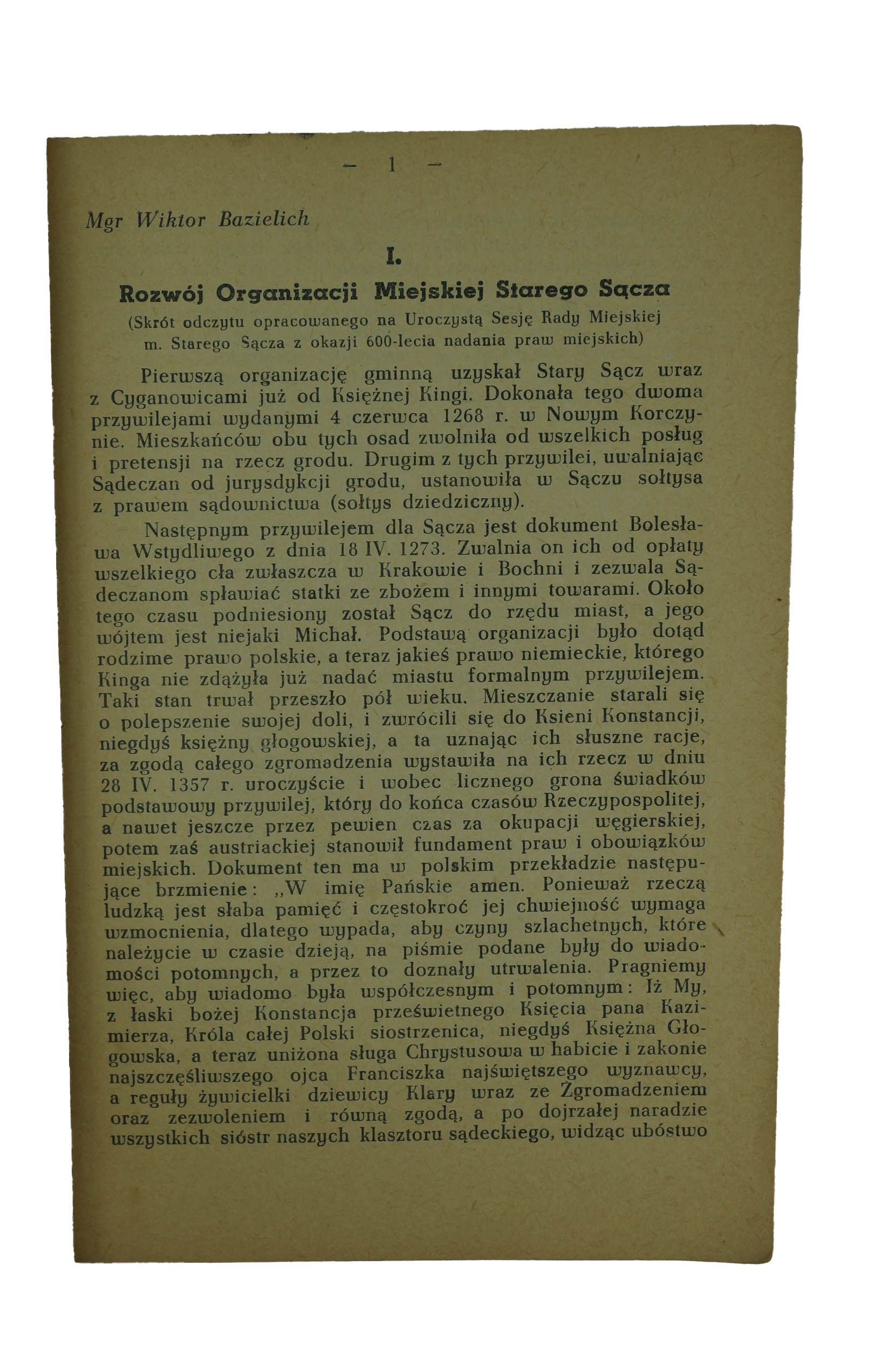 MIKUTA M., MIGACZ J., DĘBOWSKI F. - Z dziejów Starego Sącza, 1957r., nakładem Komitetu Organizacyjnego Obchodu 700-lecia m. Starego Sącza, f. 14,5 x 20cm, s. 63, [BS]