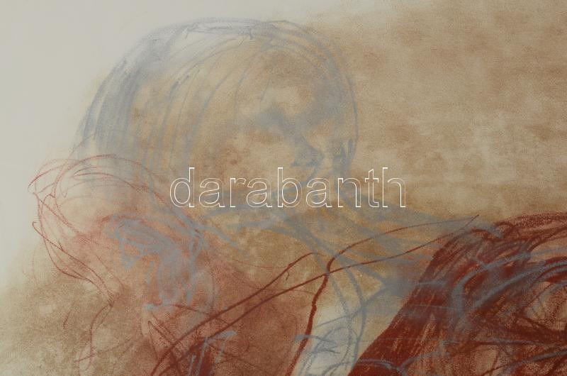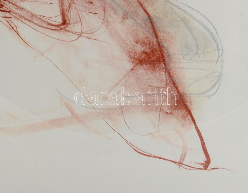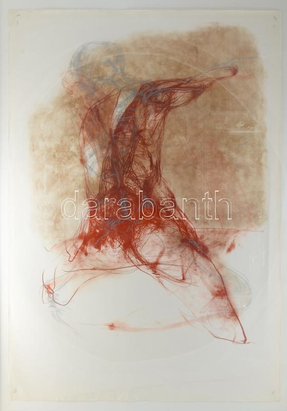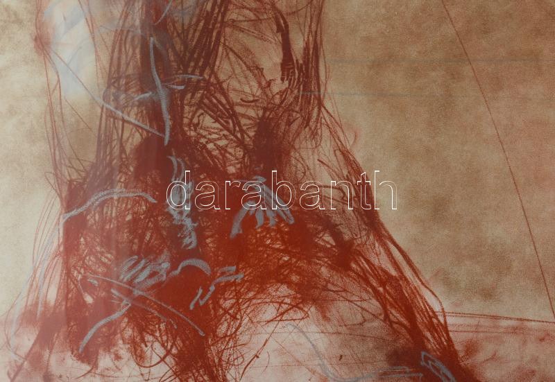 Kovács Péter (1943-2019): Lény (cím nélkül). Vegyes technika, papír, jelzés nélkül. Üvegezett keretben, üveg jobb alsó sarkában sérült. 102x72 cm