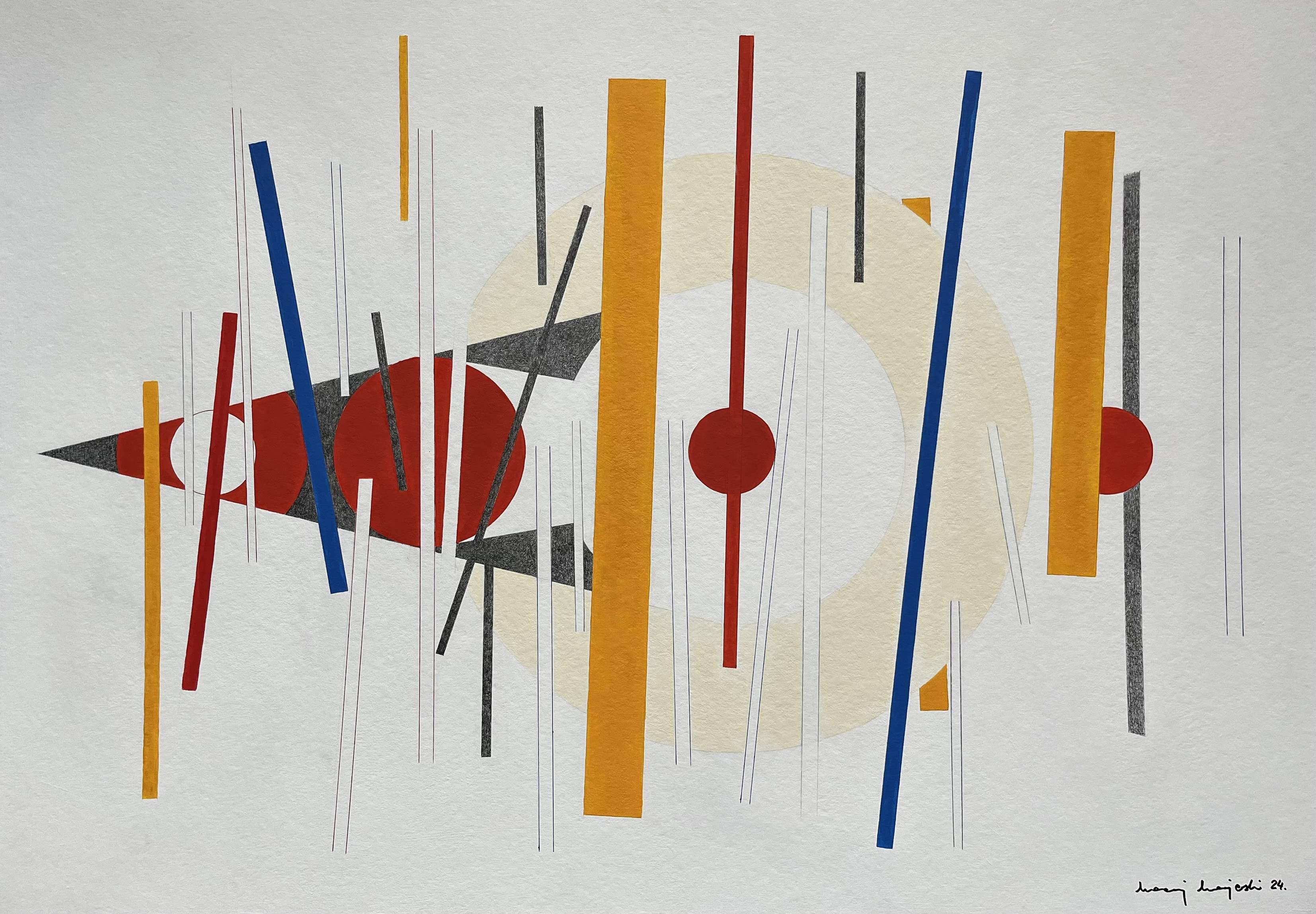 Akryl, grafit, tusz na płycie, 70 x 100 cm, sygn. p.d.: Maciej Majewski 24.
