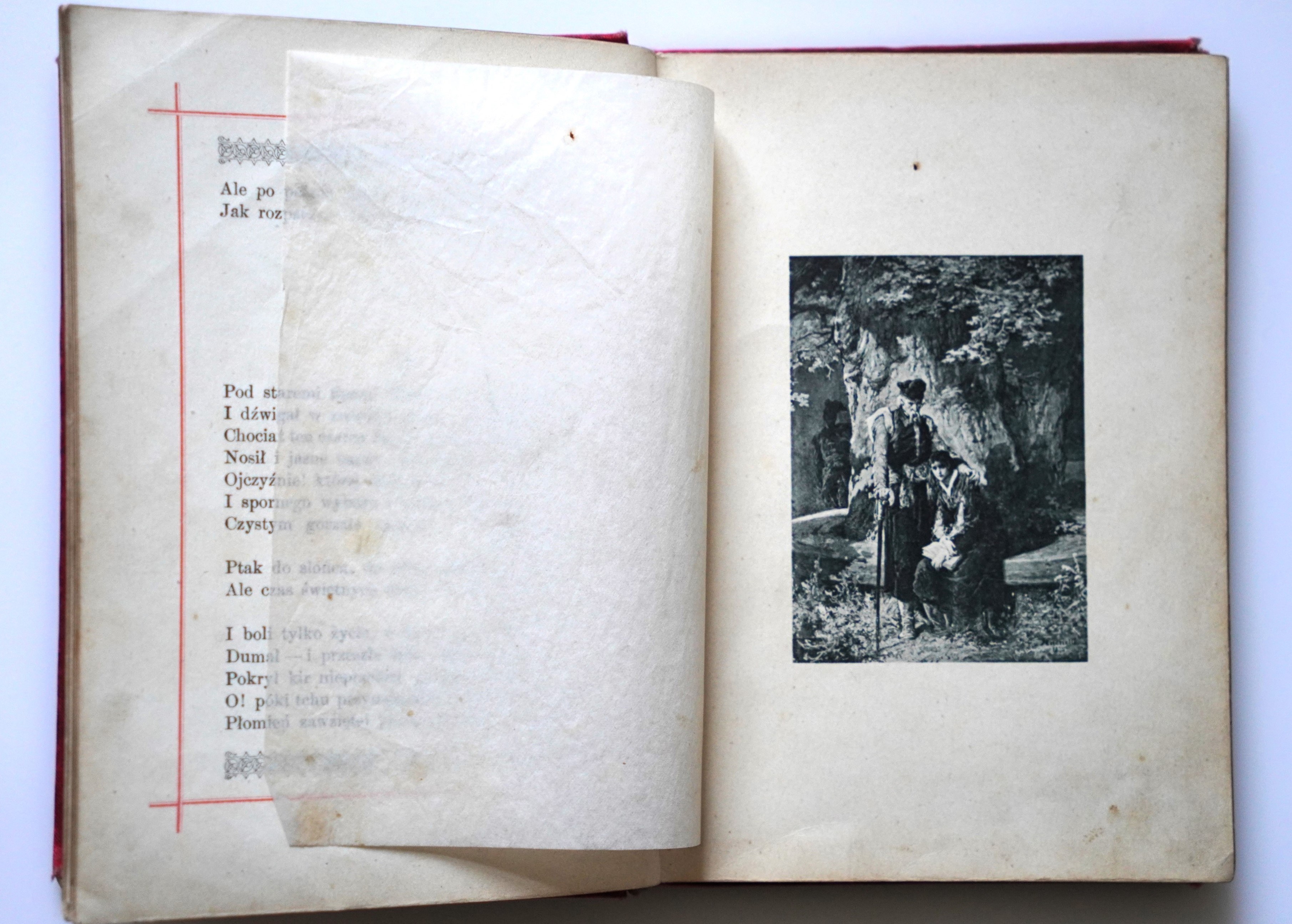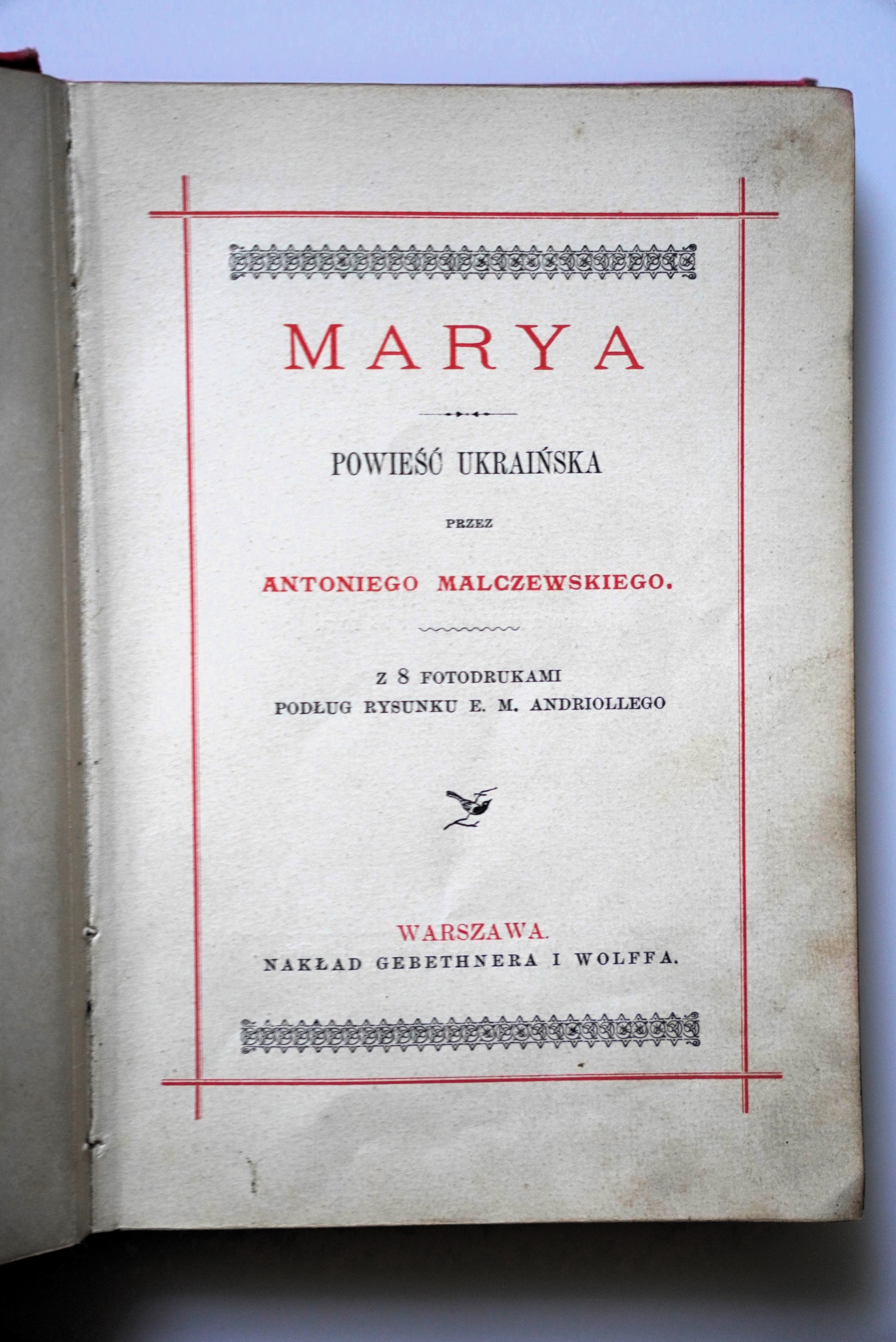 Nakład Gebethnera i Wolffa, s. [4], 83, [1], frontispis, 8 ilustracji na osobnych tablicach, wym. 11 x 15,5. Płócienna oprawa wydawnicza z bogatymi złoceniami na licu i grzbiecie; nieznaczne zaplamienia i przetarcia oprawy, grzbiet przetarty w większym stopniu; niewielkie. zabrązowienia kart oraz bibułek między ilustracjami. Obcięcia kart złocone. Oprawa sygnowana suchym tłokiem przez introligatora KAROLA WÓJCIKA (tylna okładka)