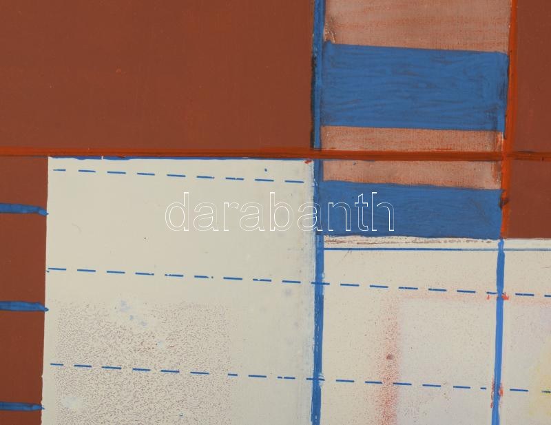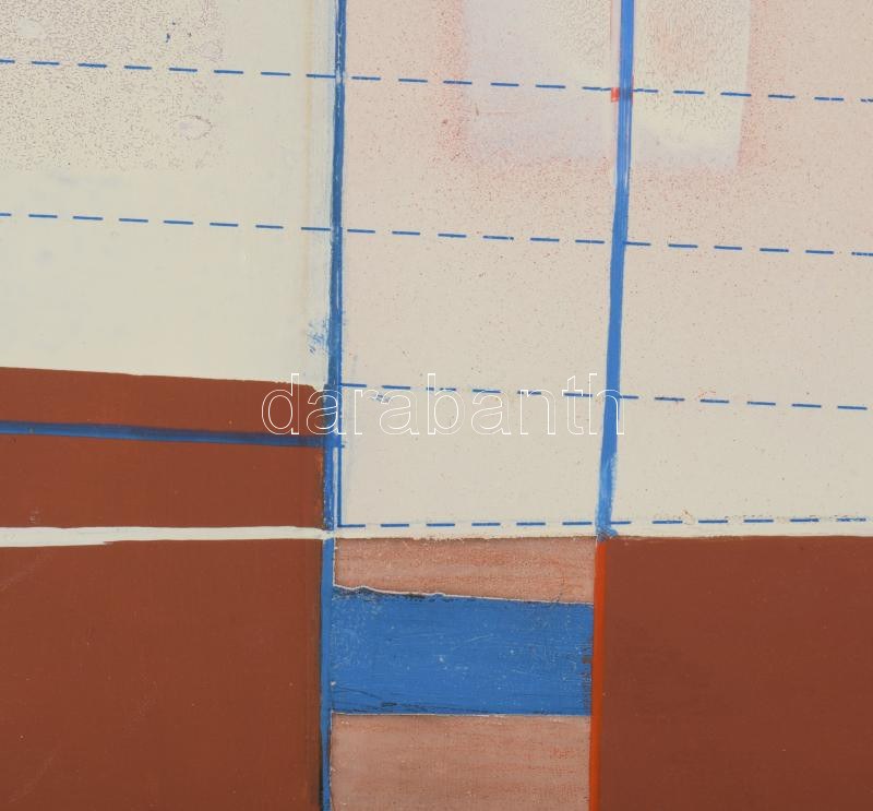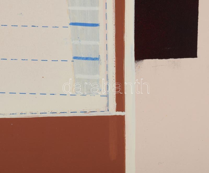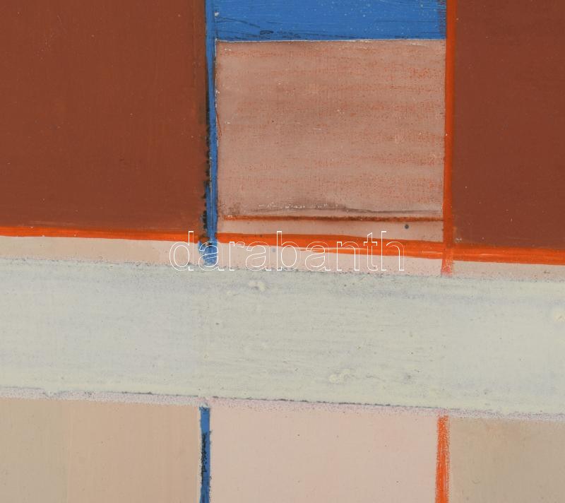 Misch Ádám (1935-1995): Geometrikus formák (Cím nélkül), 1980 körül. Akril, farost, jelezve középen lent. Keretben. 65×50 cm. / Ádám Misch (1935-1995): Untitled, around 1980. Acrylic on wood fiber, signed. Framed. 65×50 cm.