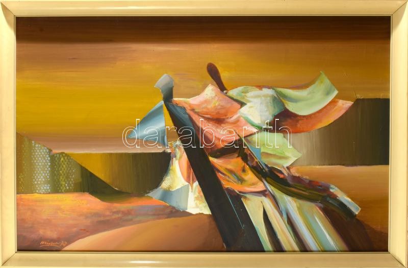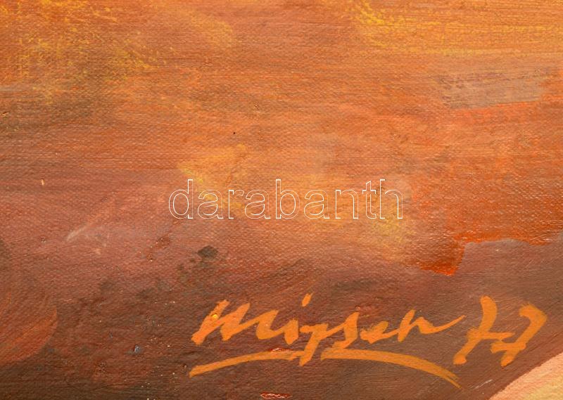 Mizser Pál (1941-2021): Hazatérők, 1977. Olaj, vászon, jelzett, hátoldalán Képcsarnok Vállalat címkéivel. Fakeretben...