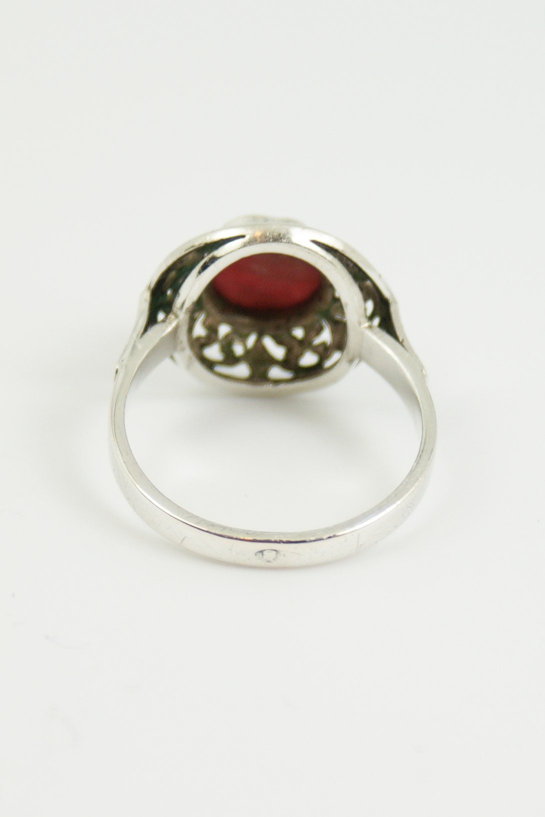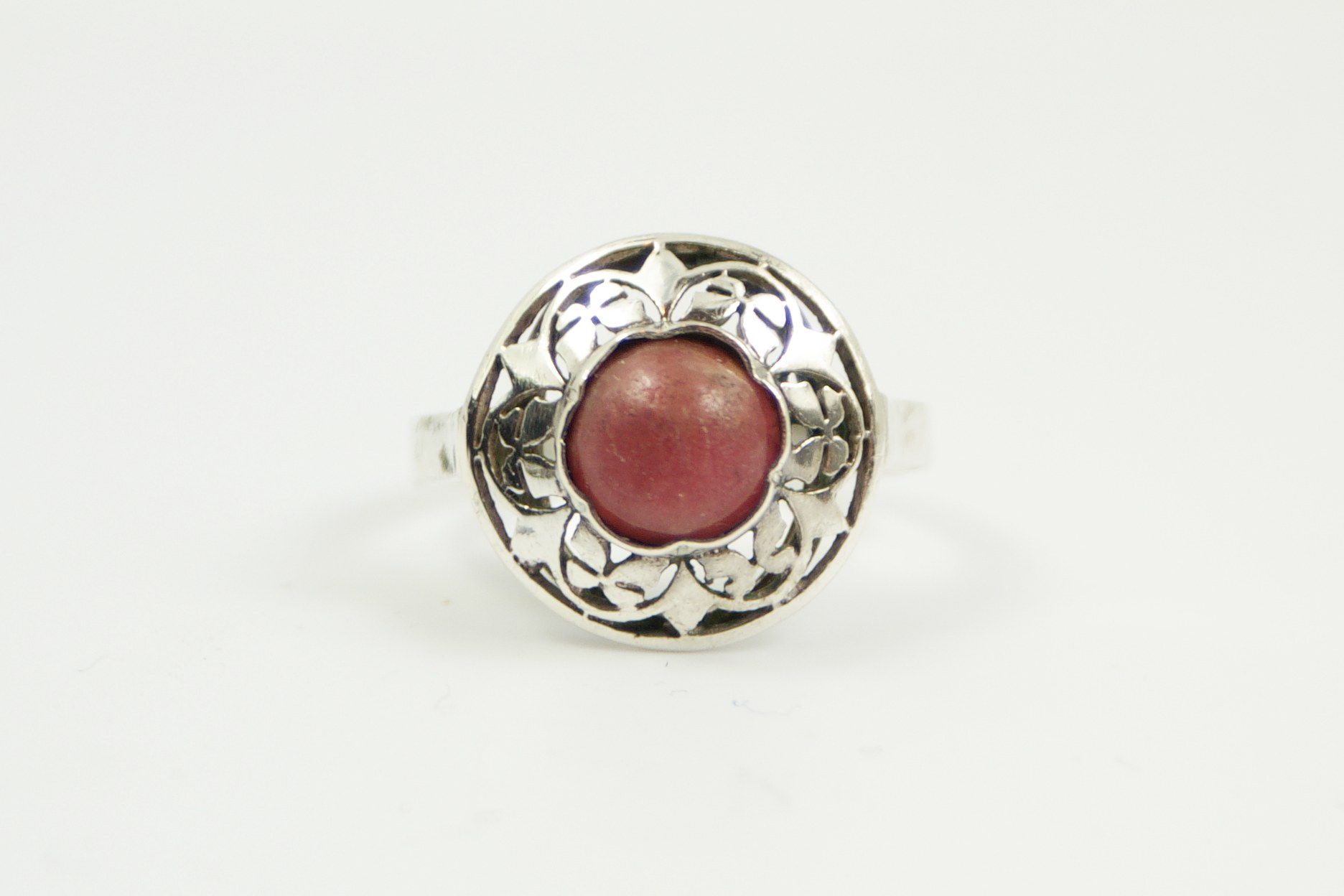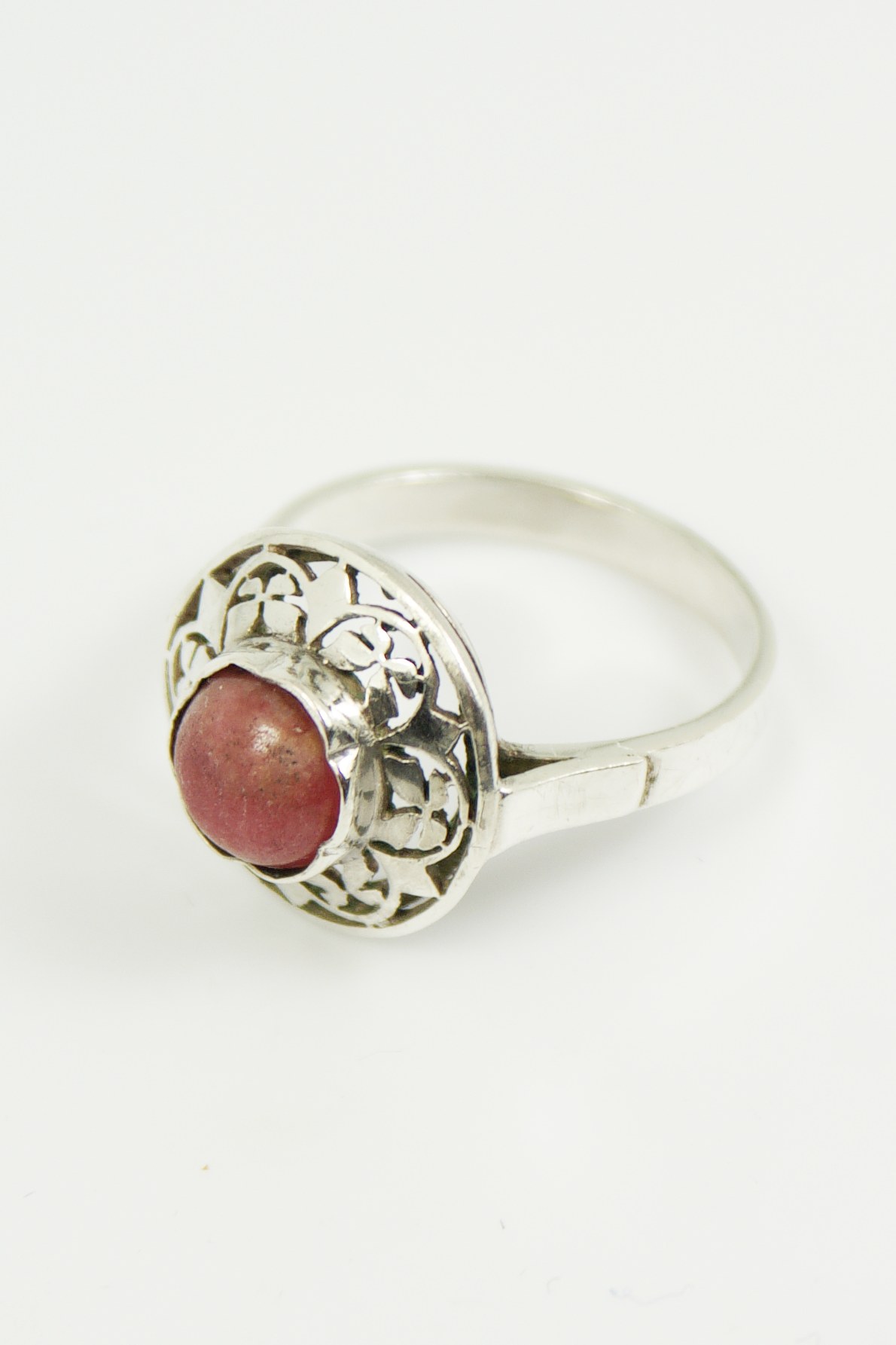 Pierścionek w srebrze próby 800, z rodonitem, Warmet- bez sygnatury, Motylki, koronka