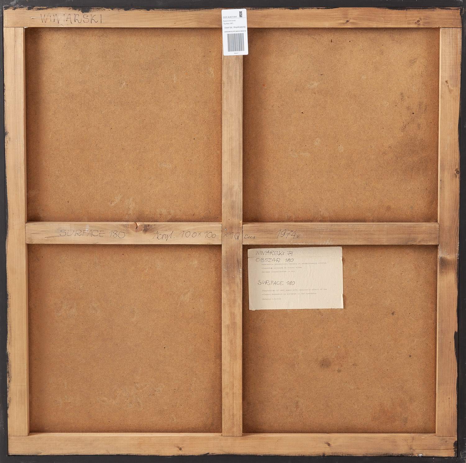 sygnowany, datowany i opisany na ramie: 'WINIARSKI | SURFACE 180 Acryl 100 x 100 x 10 cm 1974 r'