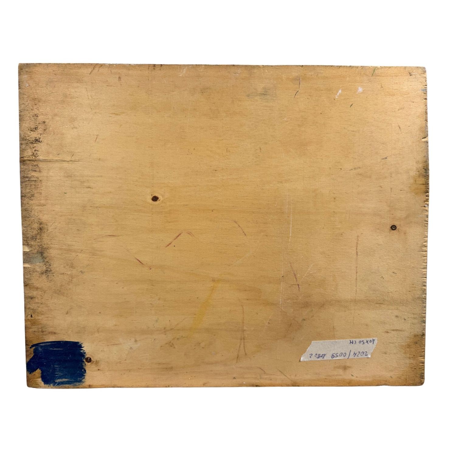 Oil painting on wood panel, 20th century, Italian school, depicting beached boats.