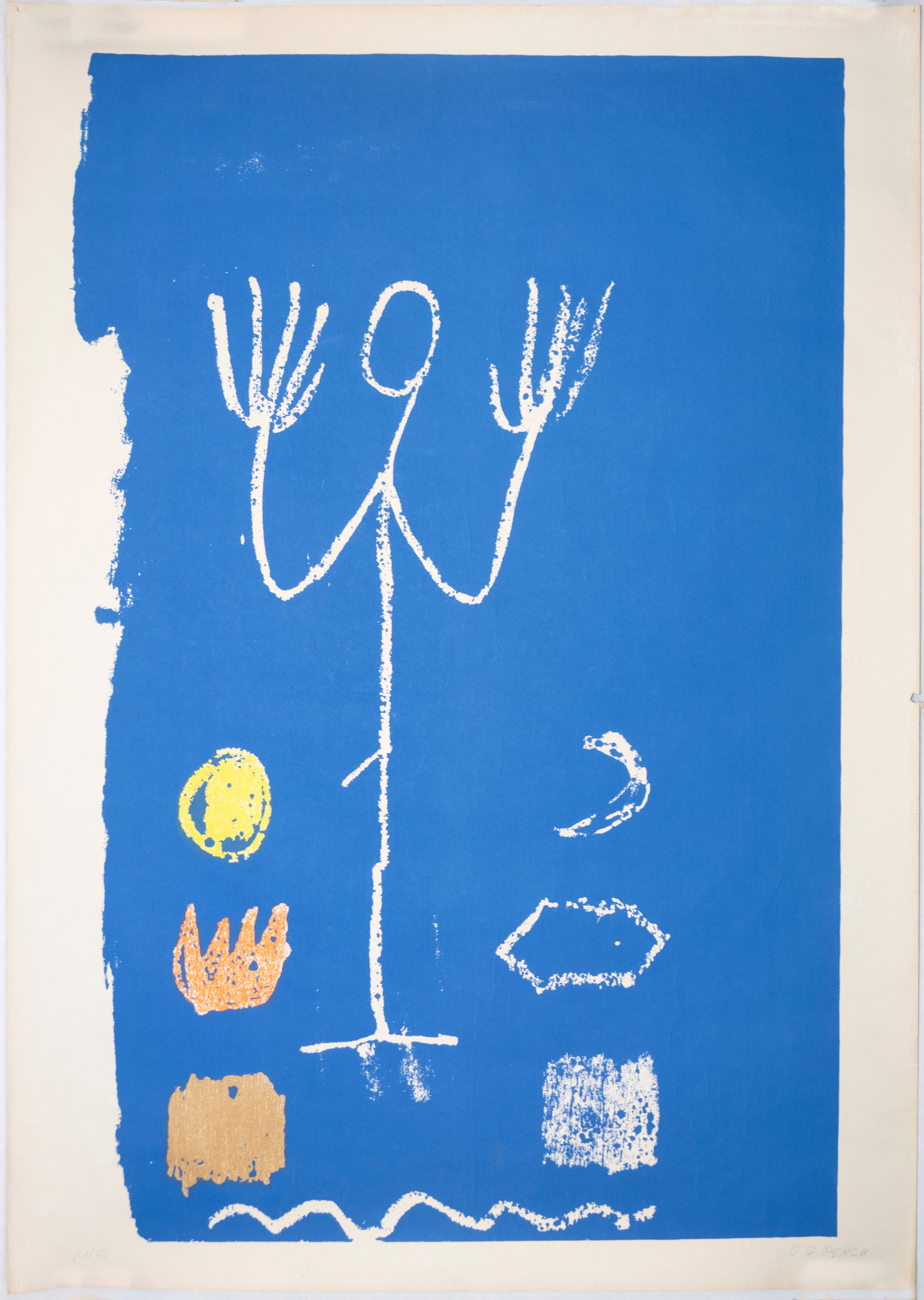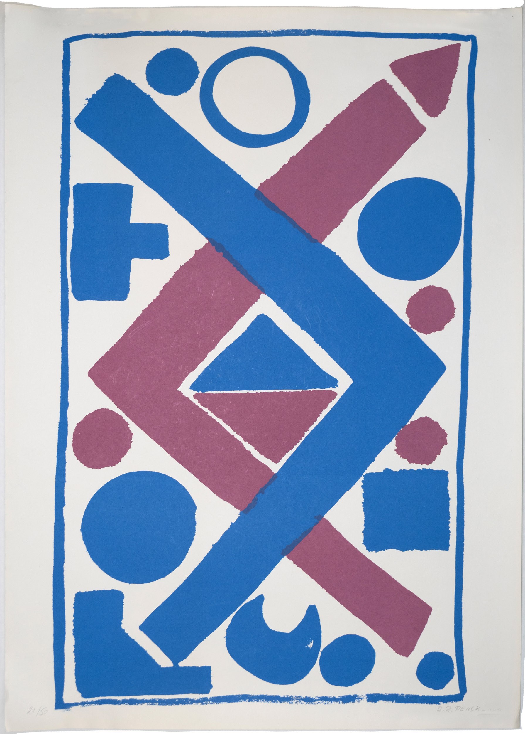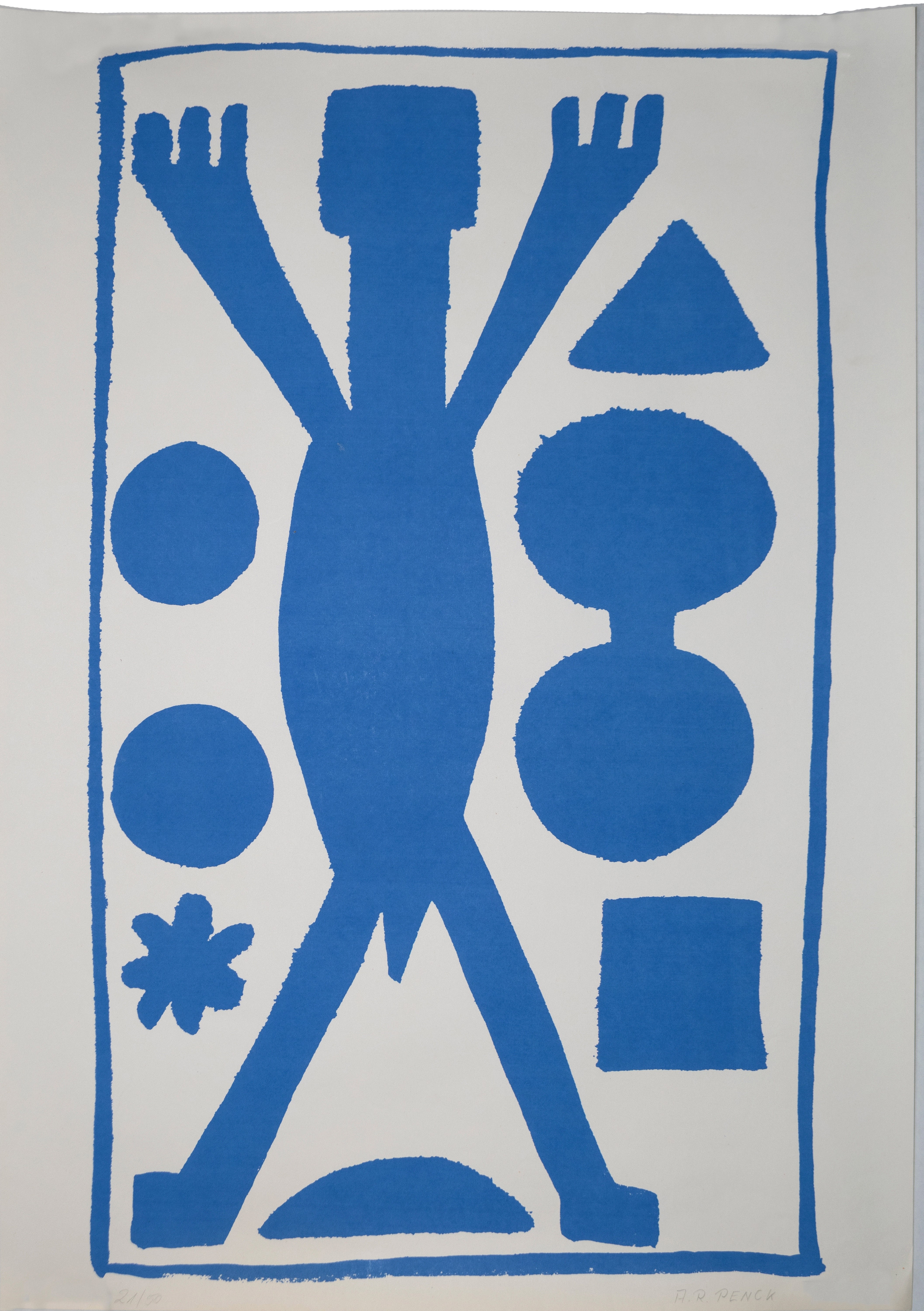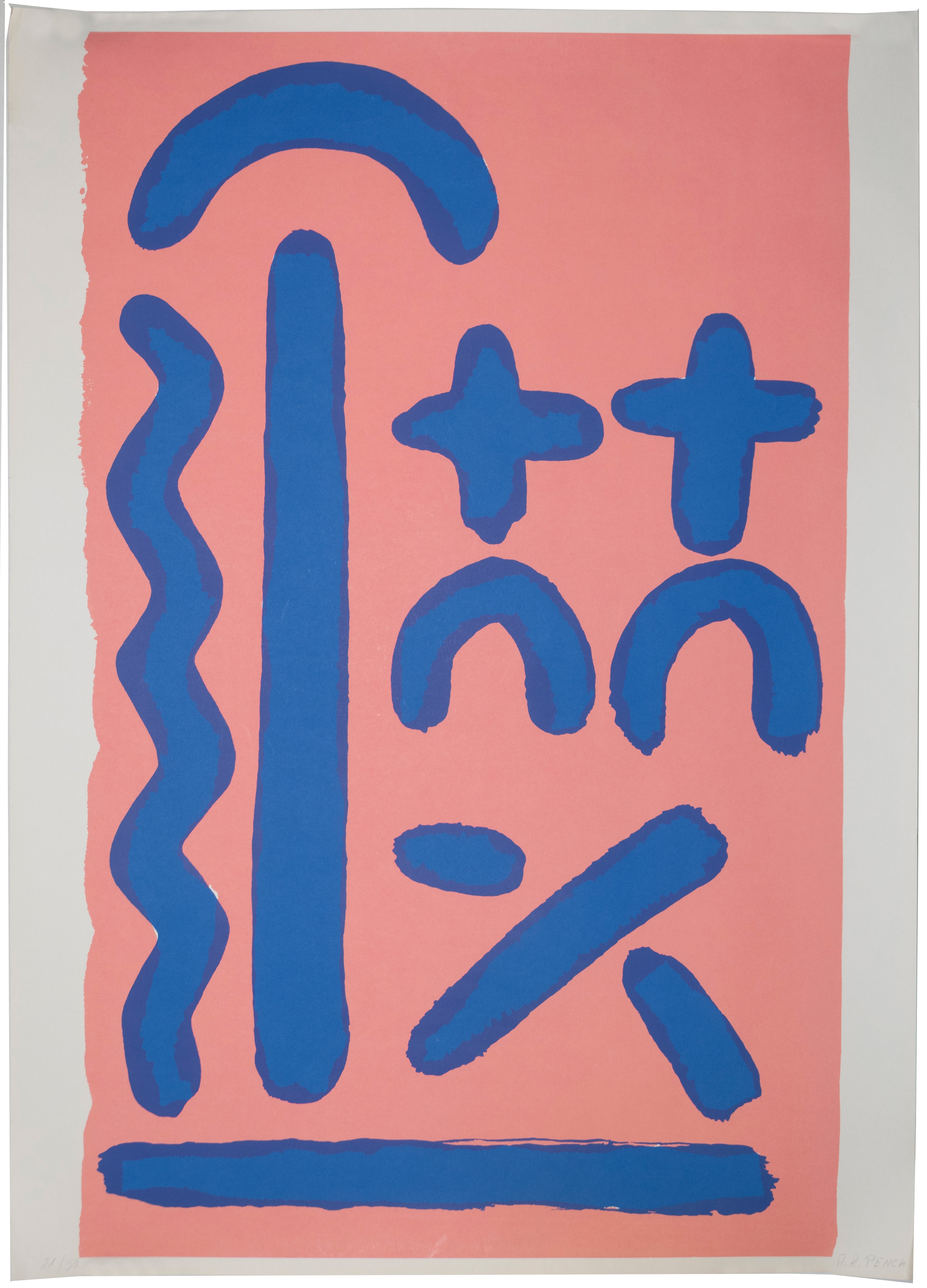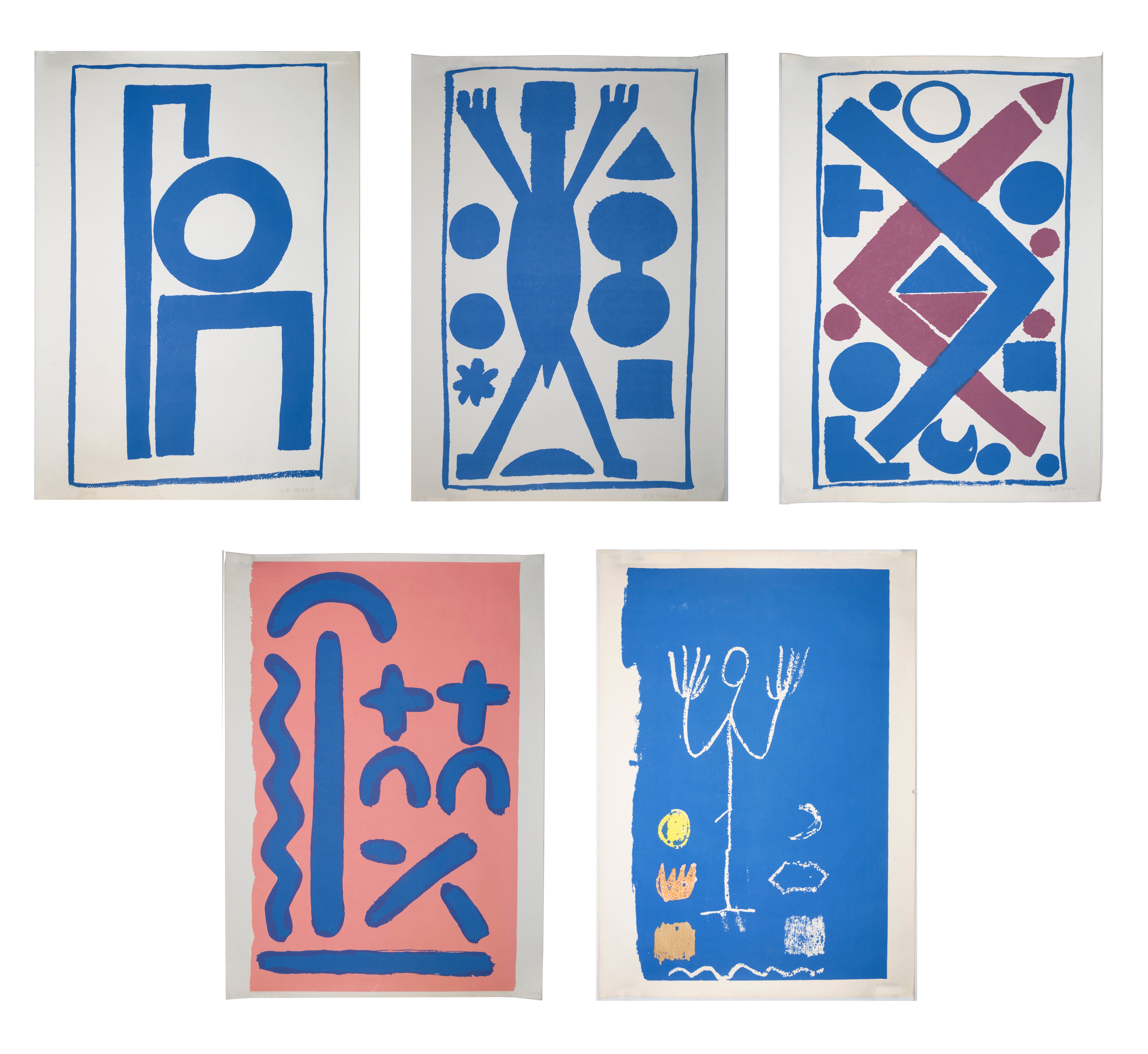 5-part, set of prints, each untitled, each colour screenprint on light cardboard, each 86 cm x 61 cm (sheet size), each numbered 21/50,each verso inscribed: Not signed by the artist, but labelled with the name A. R. Penck by the Kaiser Wilhelm Museum Krefeld in 1971, rolled, partially yellowed, small tears along the sheet edges