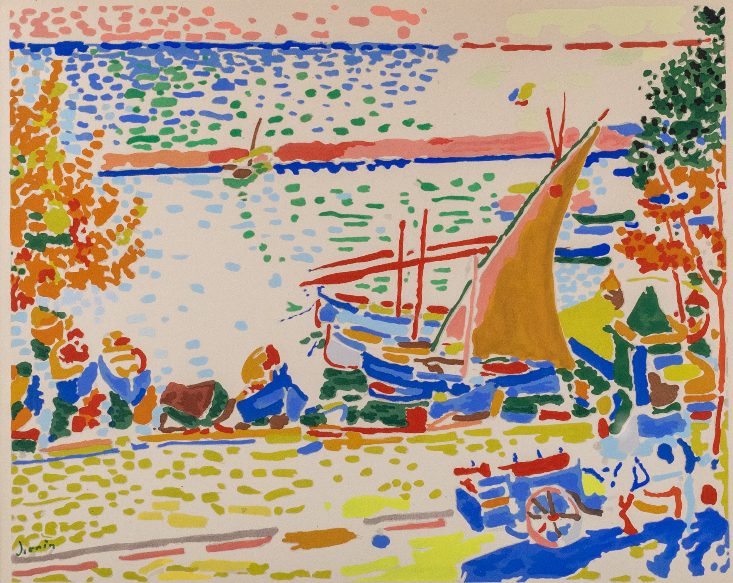 Port de Collioure (after a painting from 1906), color lithograph on wove paper, 38.5 cm x 48.5 cm visible, 54 cm x 64 cm frame size, signed in the print