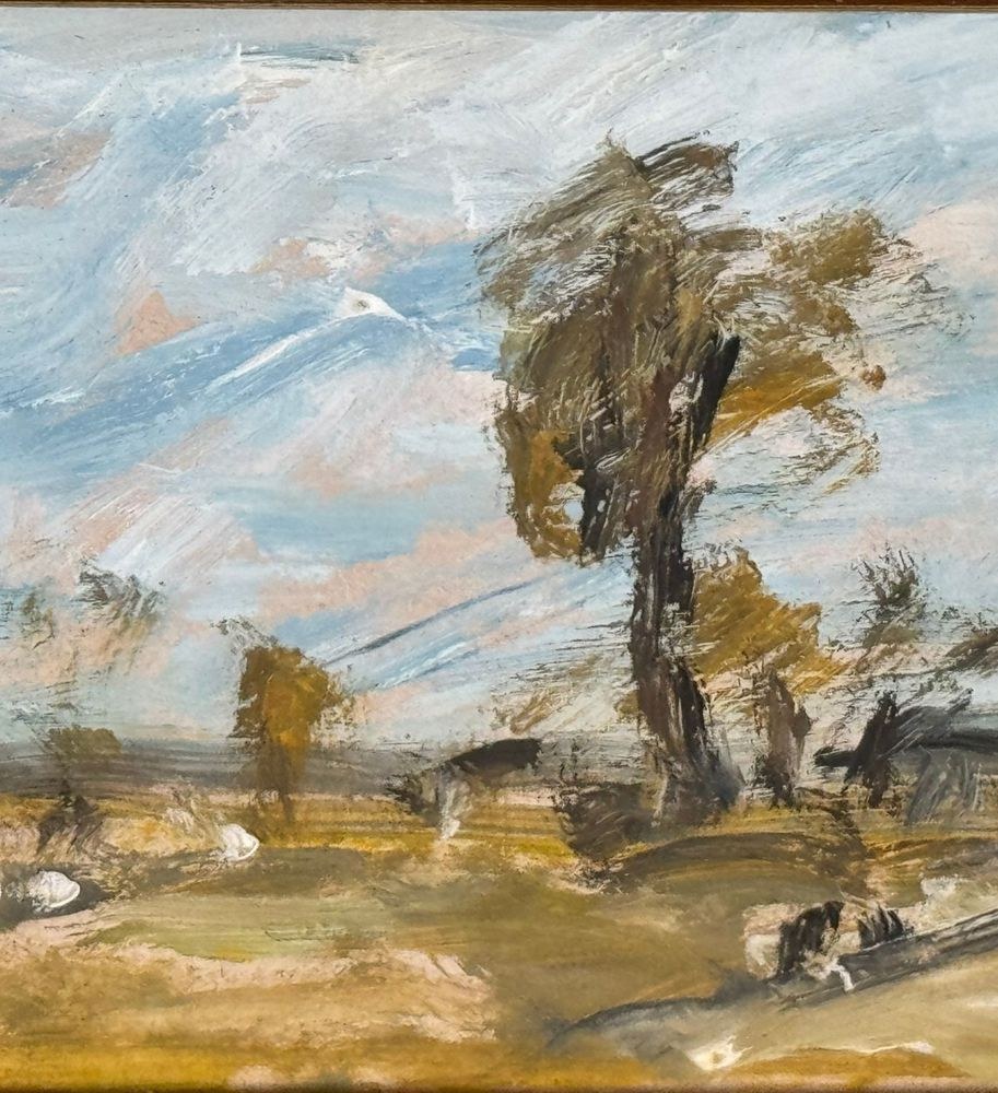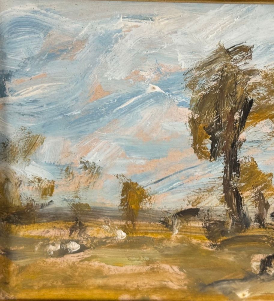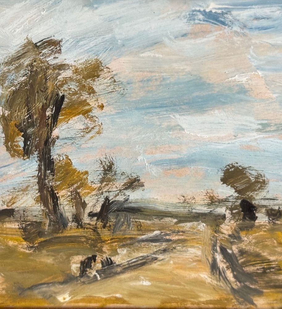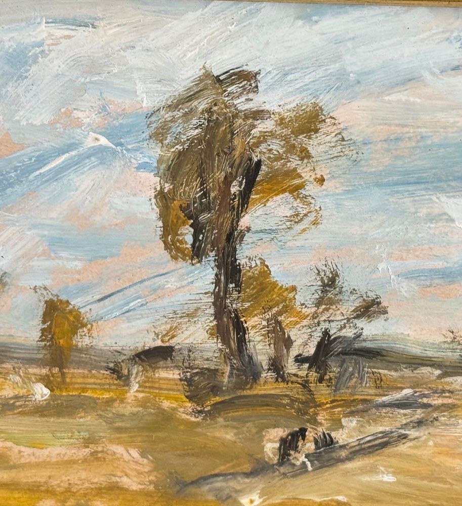 Oil painting on cardboard, 20th-century Italian school, depicting a landscape. Dimensions including frame: 41x29 cm. Dimensions within the frame: 22x10 cm. Signed lower right: Antonio Asturi. The work is in good condition.