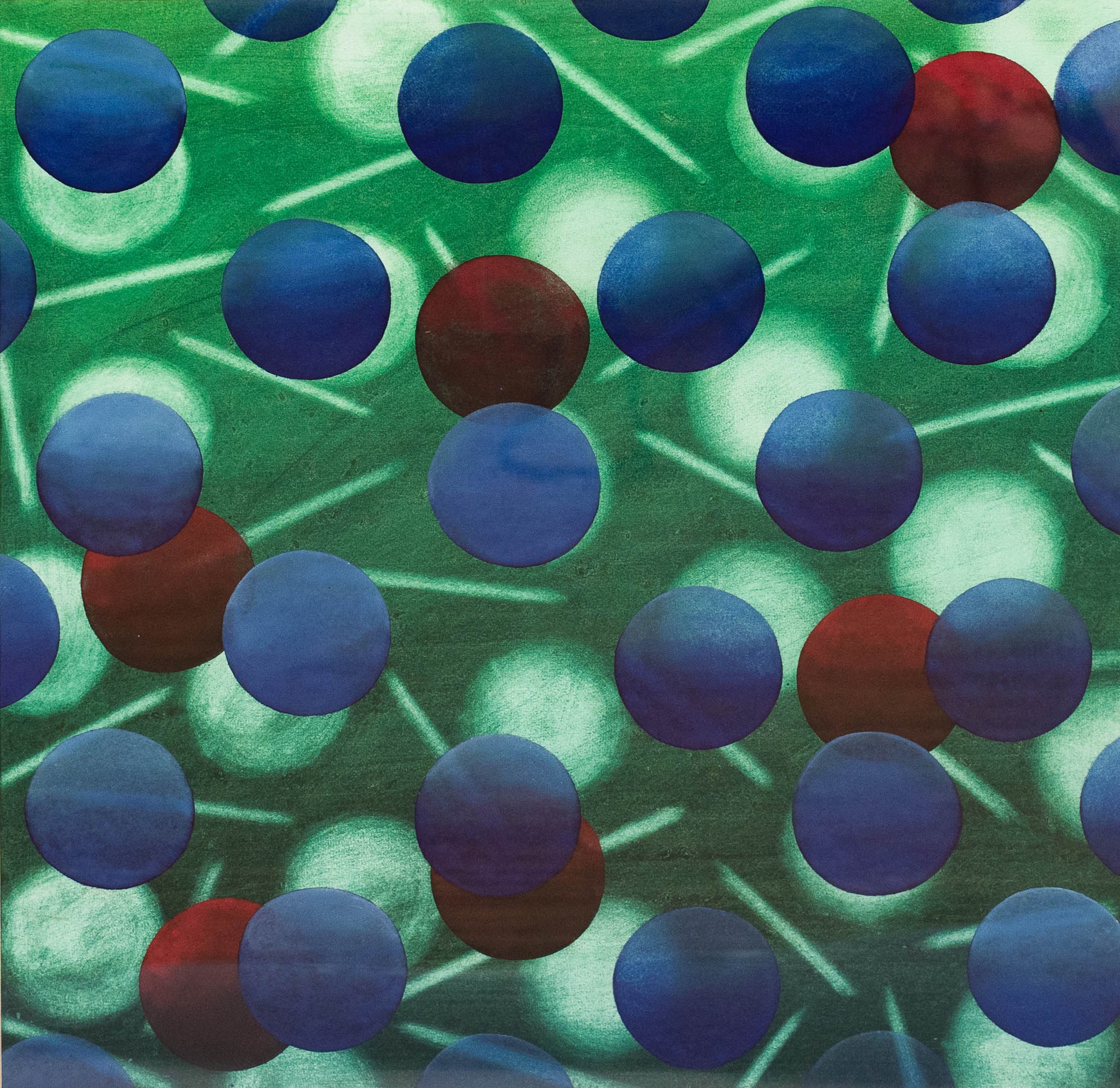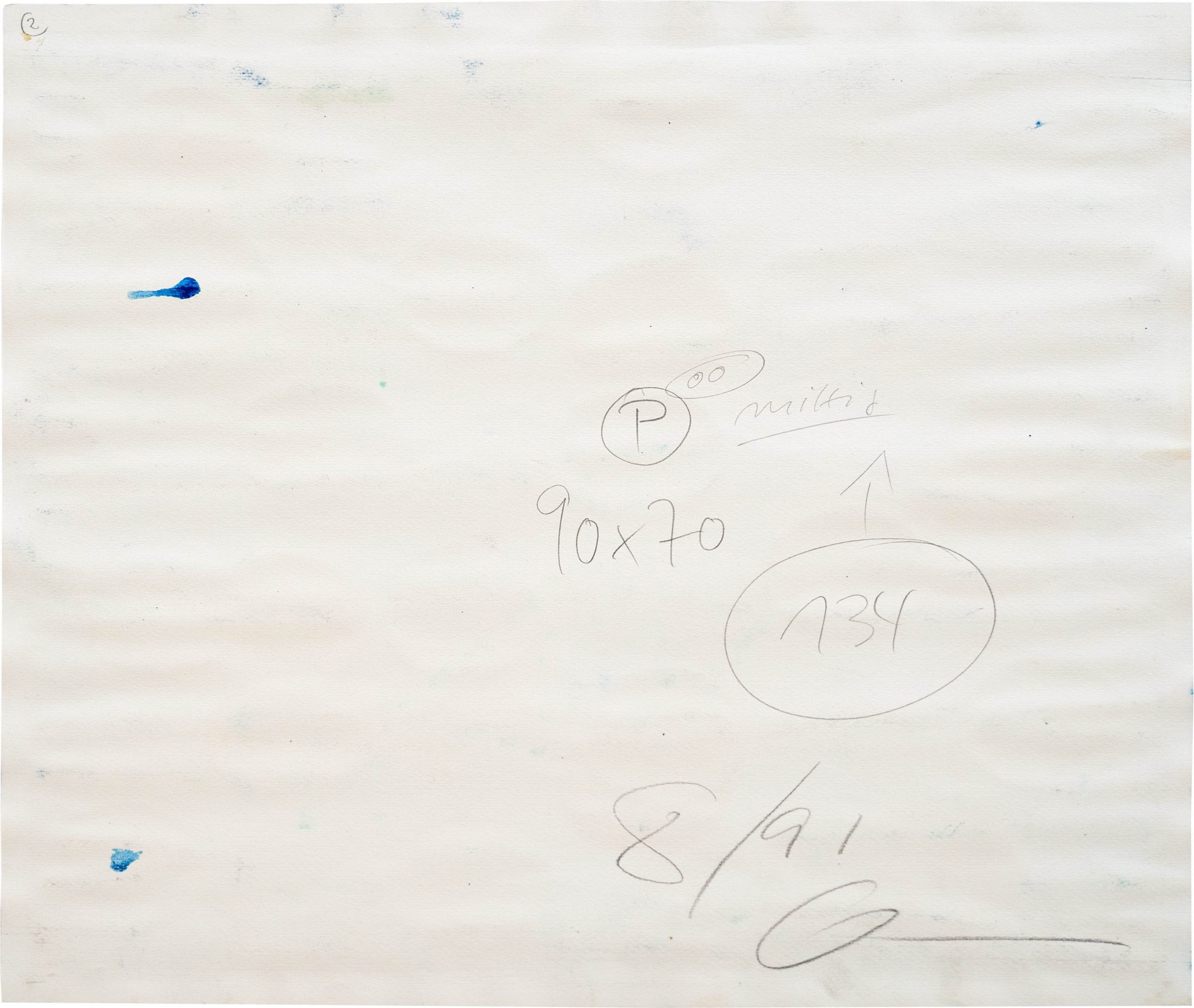 Composition with Circles, gouache on handmade paper, 56 cm x 56 cm sheet dimension, signed verso, dated 8/91, Annotations in pencil by another hand, mounted on the top edges, partial slight stained, Provenance: art collector from NRW, Information: For this object the VAT of 19 % will be charged on the hammer price + buyer's premium (regular taxation).