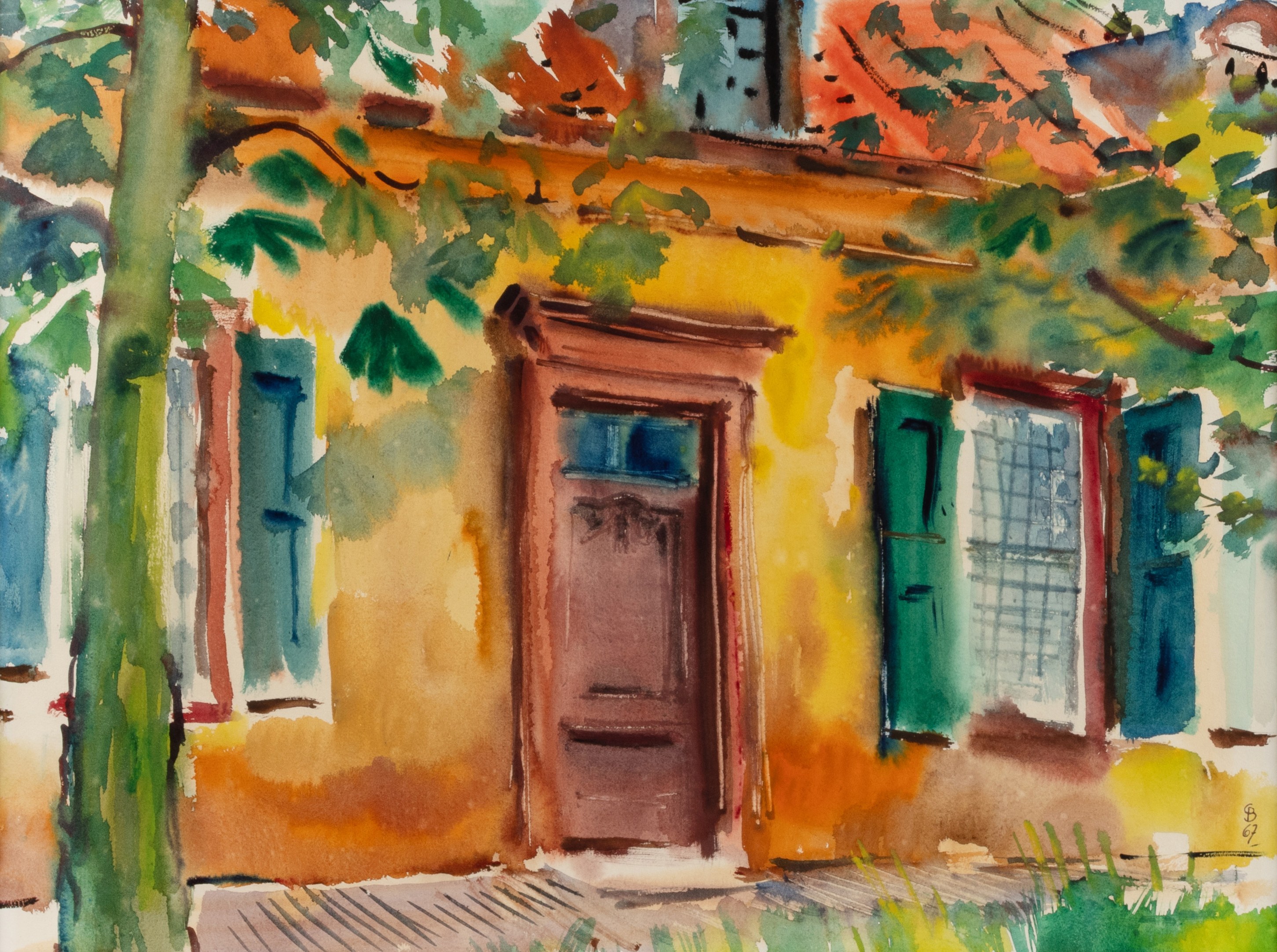 House entrance, watercolor on paper, 45.5 cm x 60.5 cm inside mount, monogrammed, dated 68, provenance: acquired directly from the artist