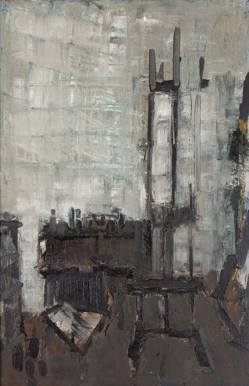 sygnowany, datowany i opisany na odwrociu: 'Jacek | Sienicki | ol. pł. 1986 | "WNĘTRZE | PRACOWNI" | SZARE'