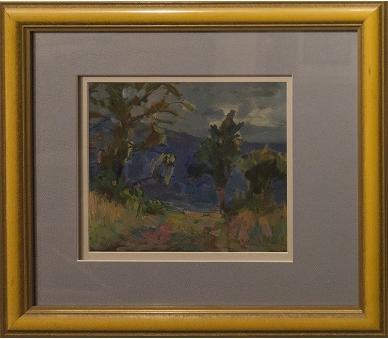 Olej na desce, 22 x 25 cm (oprawiony 41,5 x 49 cm).