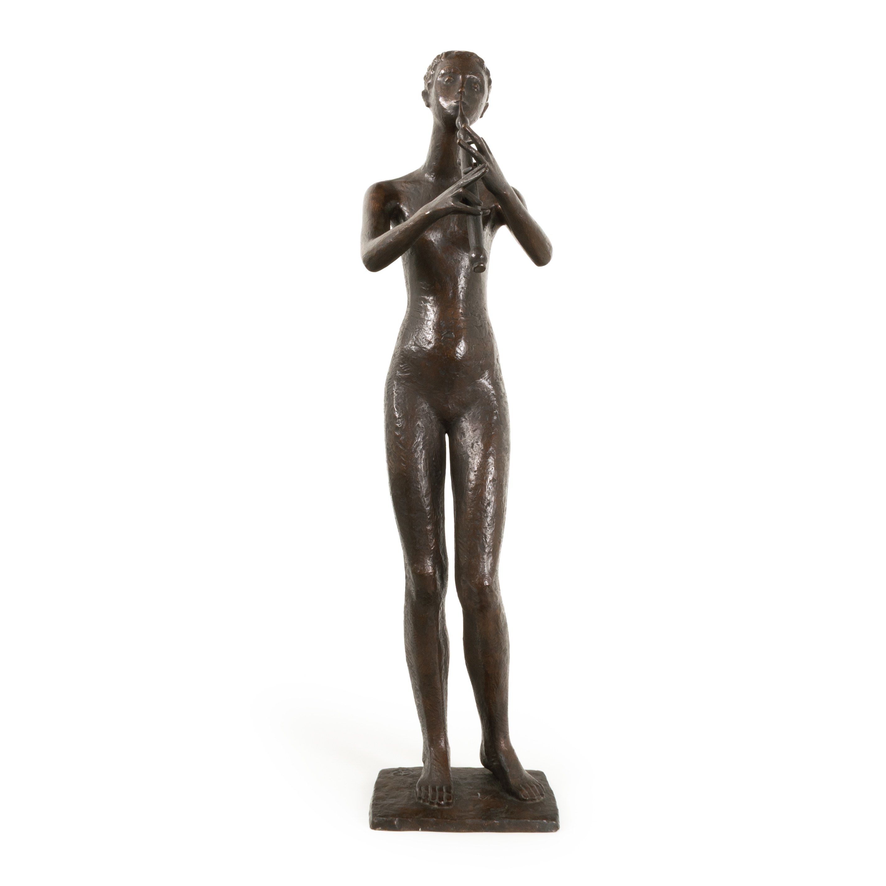 Flute Player, bronze, dark patinated, 81 x 21 x 32 cm, signed, partially rubbed and scratched