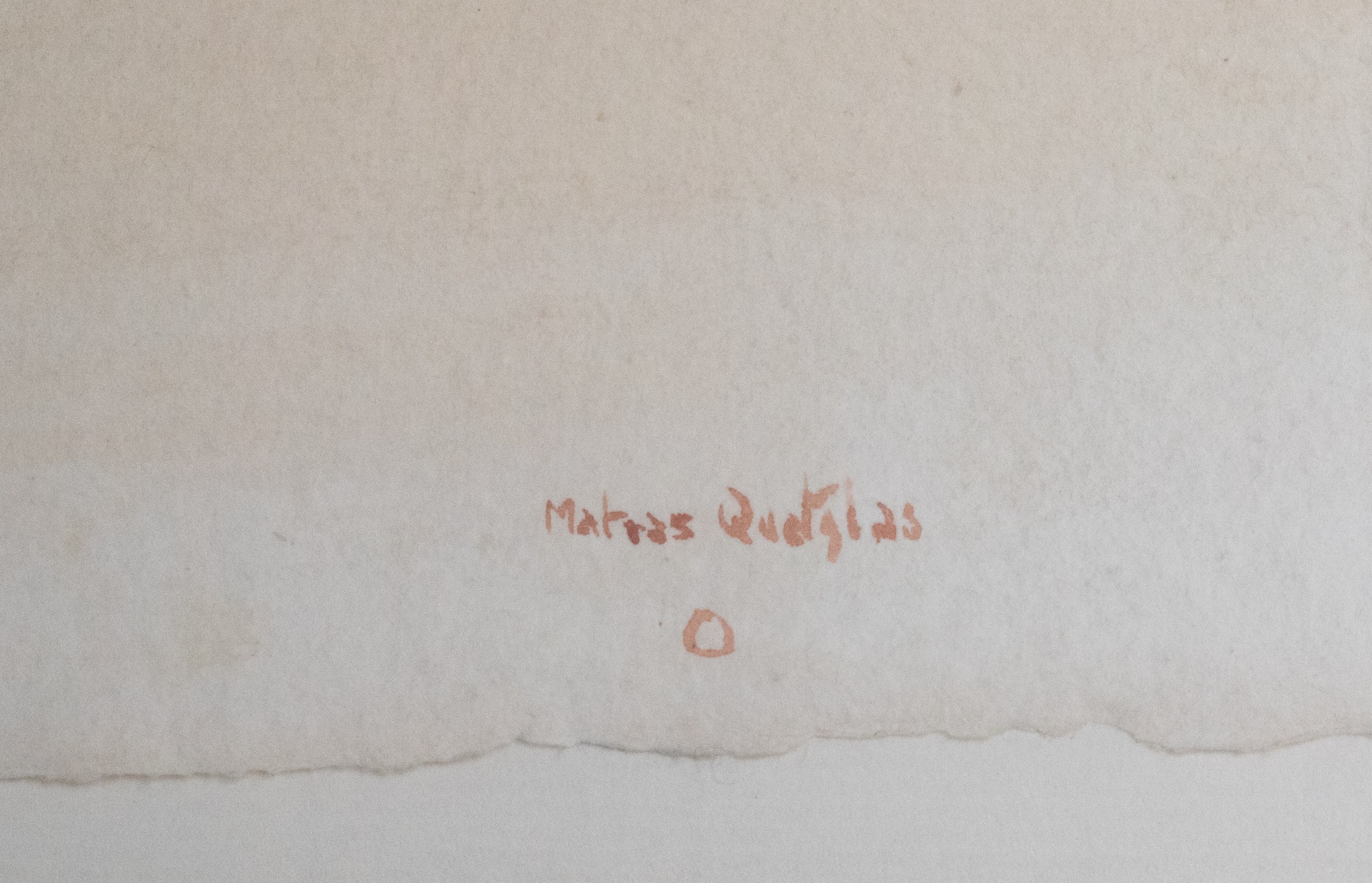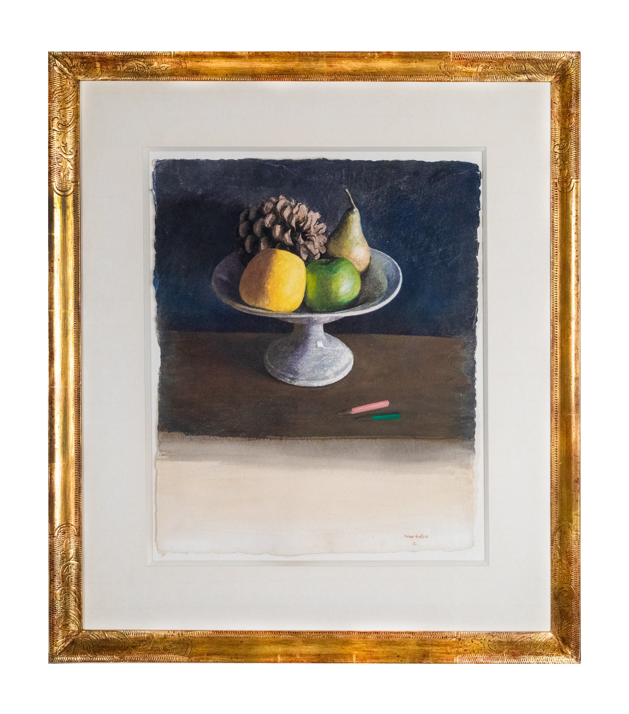Still life with apples and pear, aquarelle on paper, 40 cm x 33 cm sheet dimension, signed, mounted, wavy